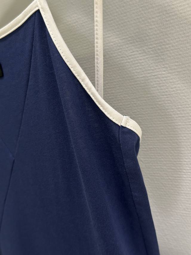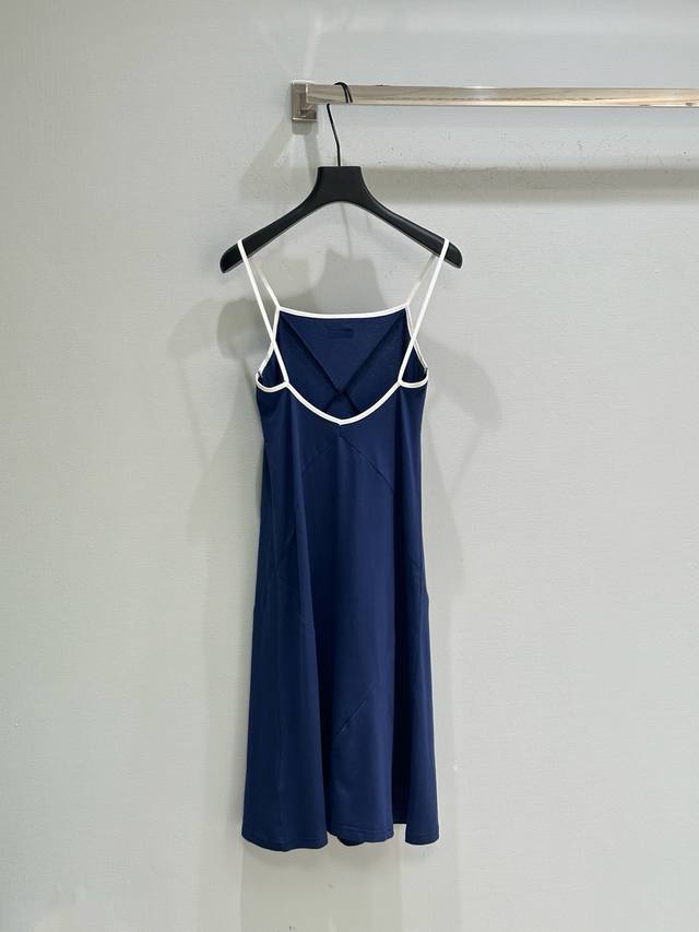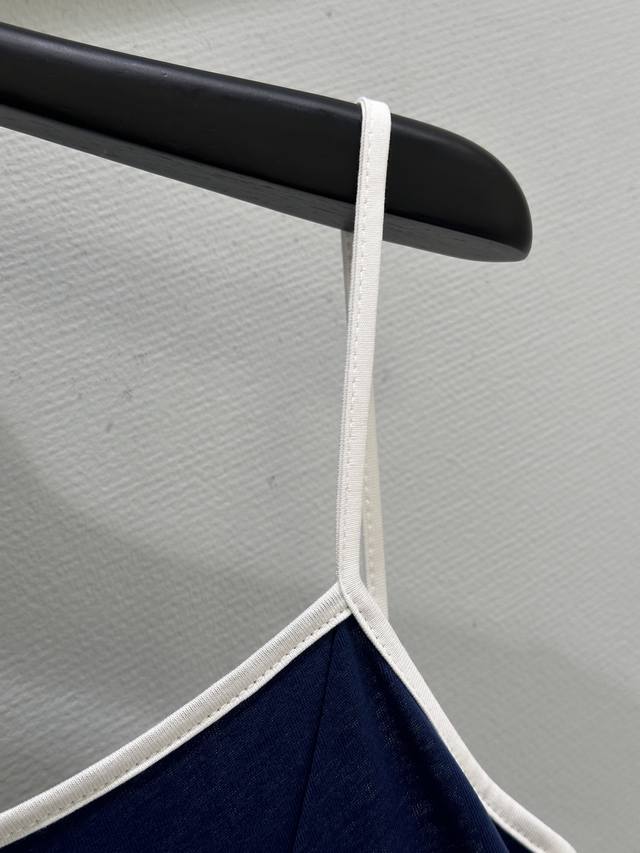 25Ss Early Fall New Arrivals! This thin-strap dress features a three-dimensional cut, with a smooth cross-line design on the chest. The contrasting logo on the straps makes the dress less monotonous. Available in two colors. Available now: navy blue and white Sml