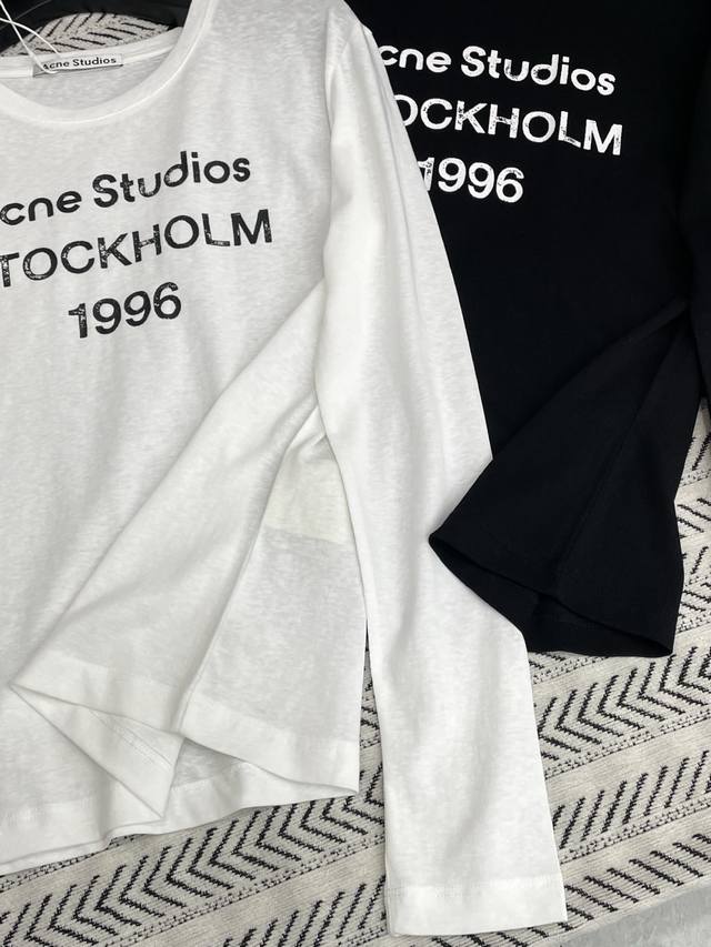 Acne bamboo cotton classic versatile 1996 letter print long-sleeved cotton T-shirt!