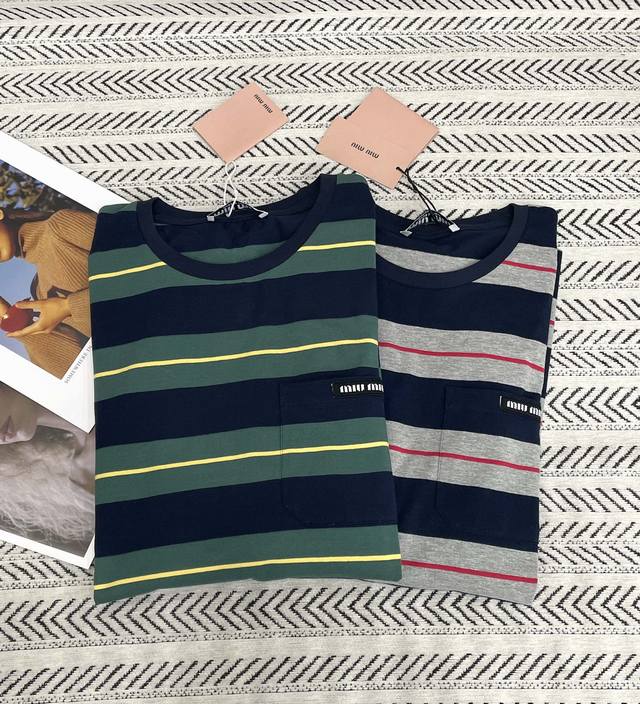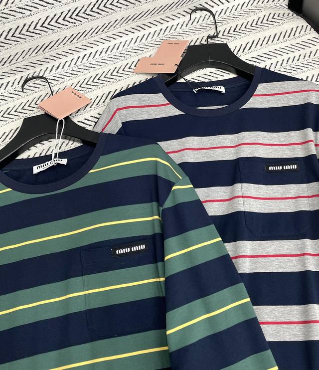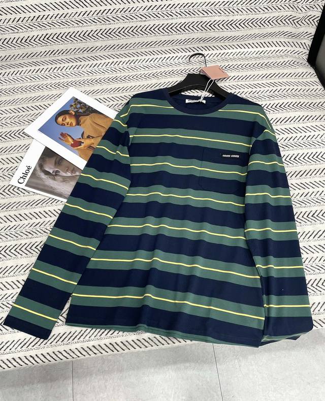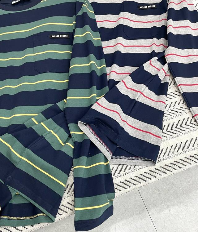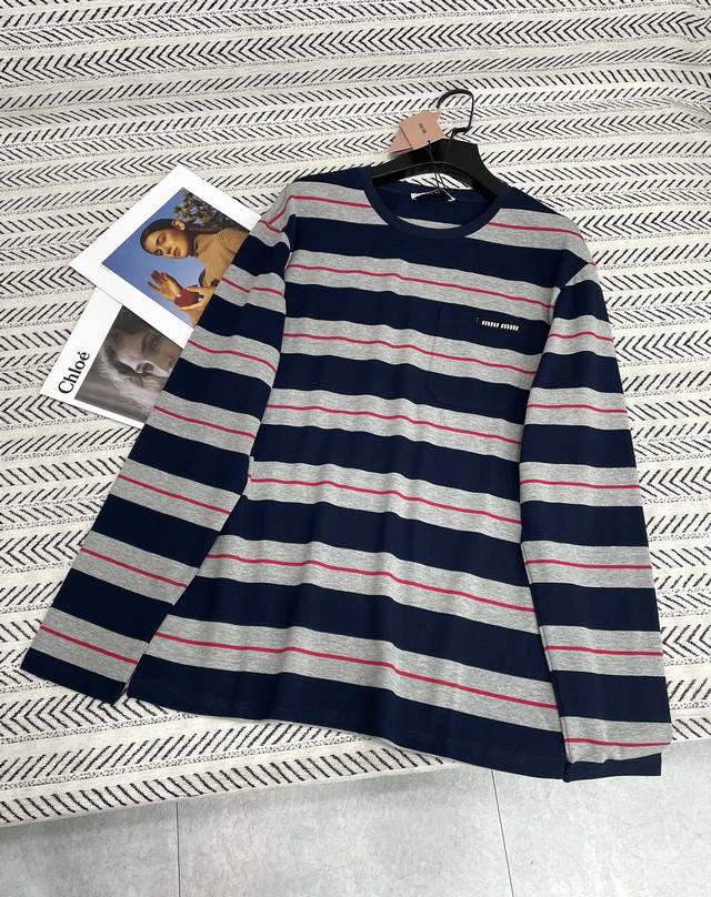 25Ss New autumn and winter Miu fashion color block striped three-dimensional log