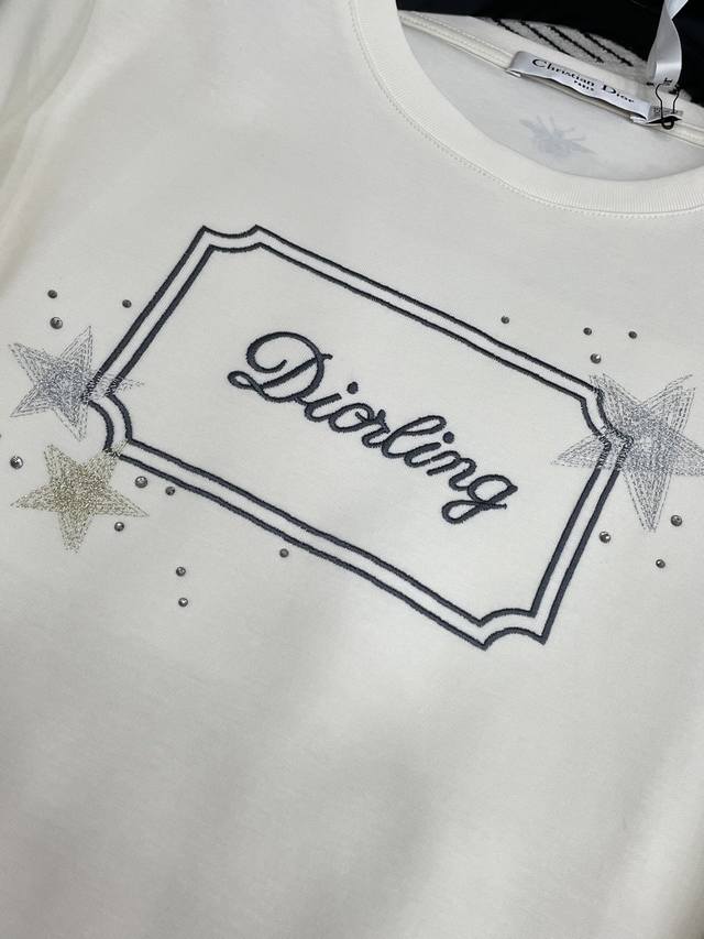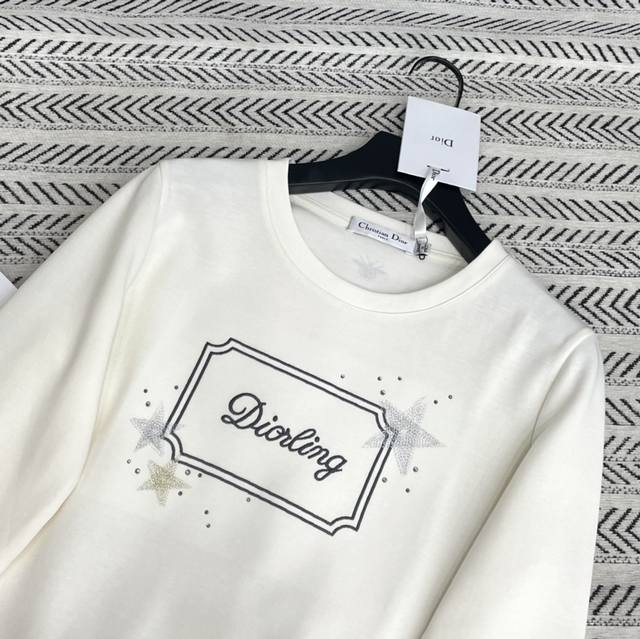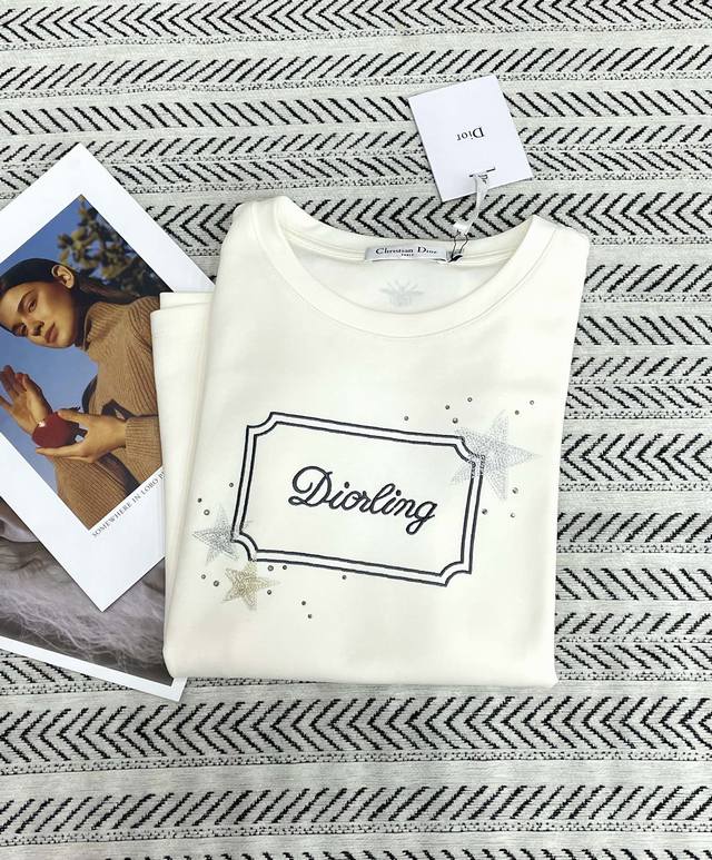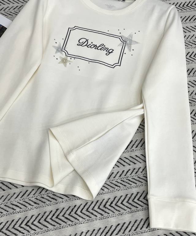 Di*Or five-pointed star gold thread embroidered letter long-sleeved cotton T-shirt!
