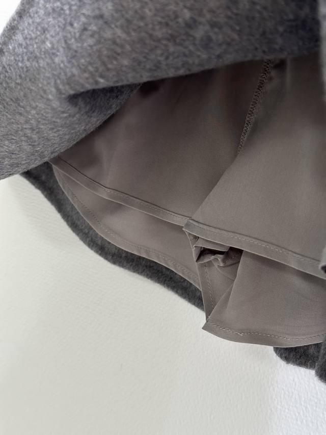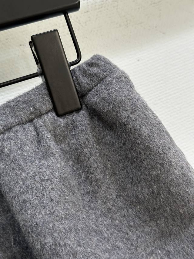 25Ss New Autumn Arrival! Gray wool coat + skirt set, autumn/winter style. The coat features a double zipper design, with a logo on the chest that echoes the logo on the skirt. The structured silhouette is complemented by a matching elastic drawstring skirt. Available in gray, sizes S, M, DDD.