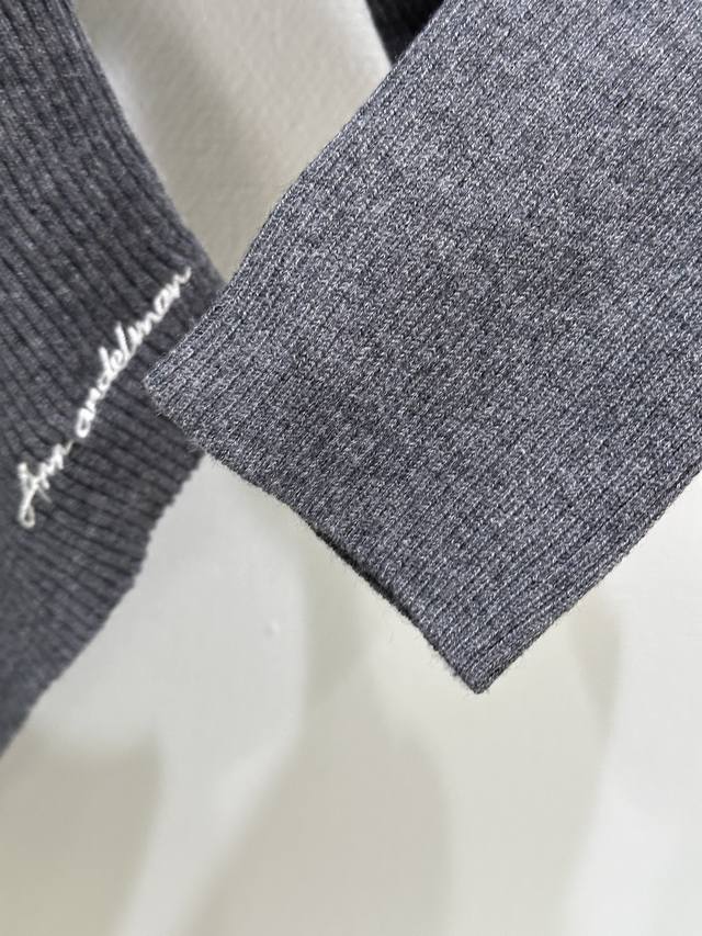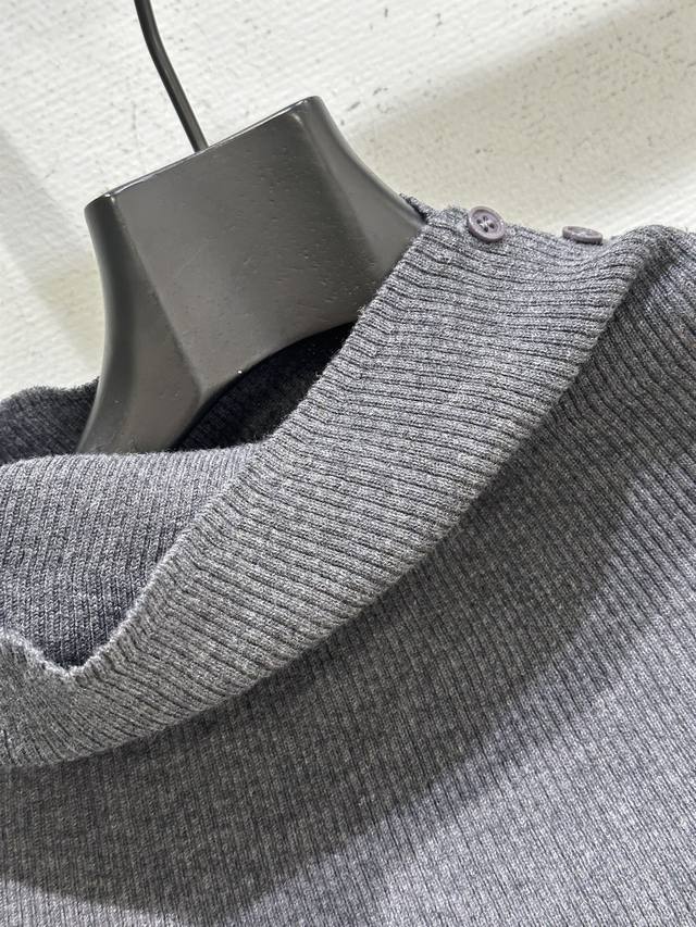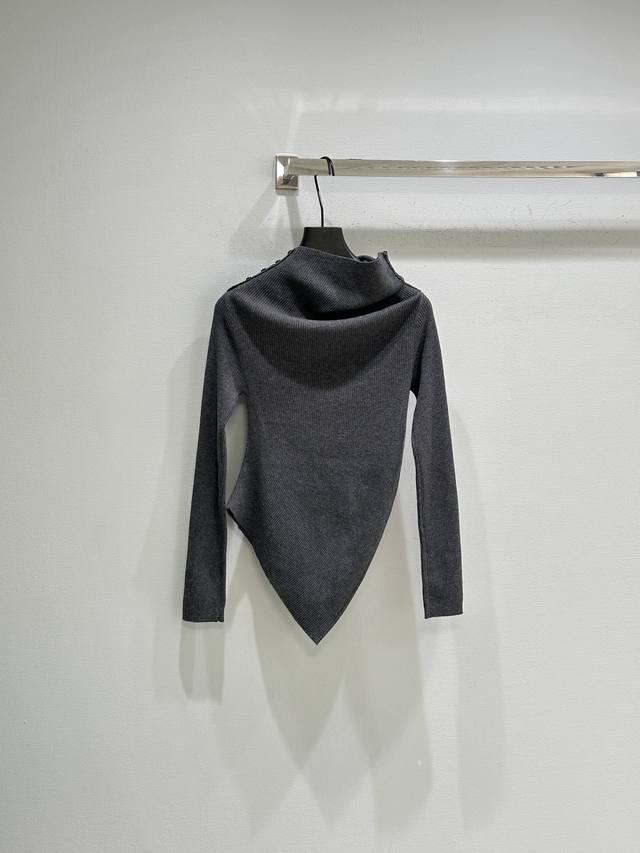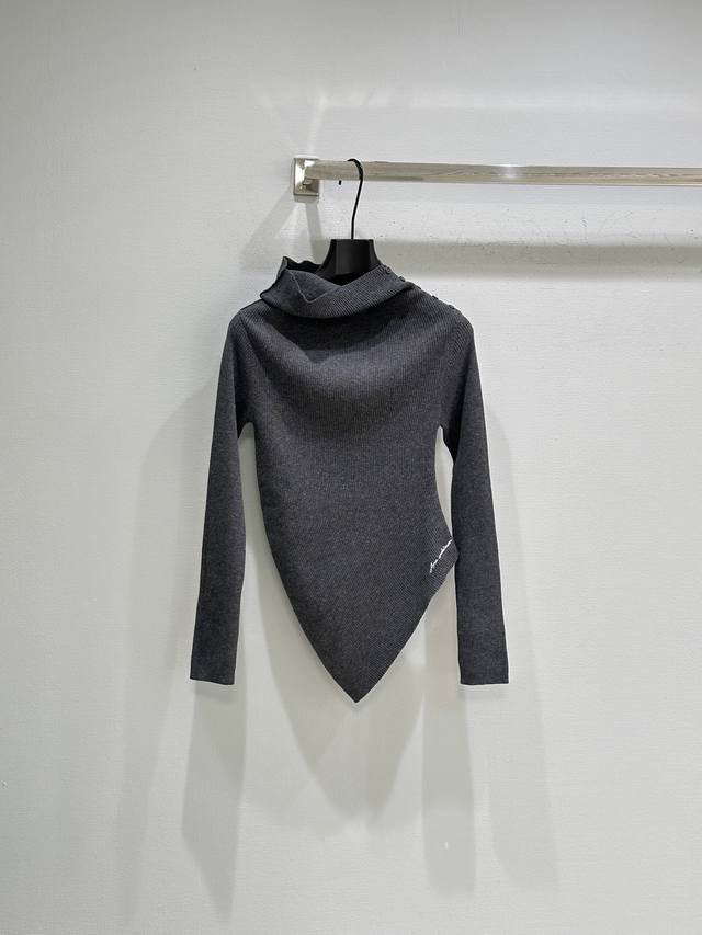 25Ss New Autumn/Winter Arrival! Asymmetrical off-shoulder knit top for women, slim fit, black, fashionable long-sleeved top with a slanted hem. Slim fit and cinched waist design, stretchy knit fabric, and embroidered logo on the hem highlighting the brand. Available in grey and black, sizes S, M, L, DDD.