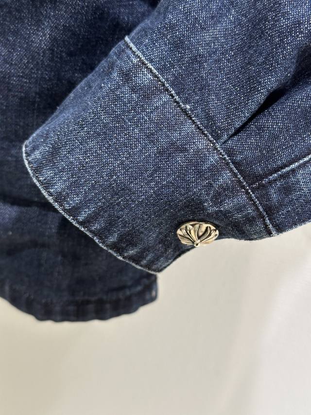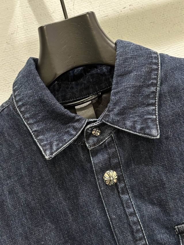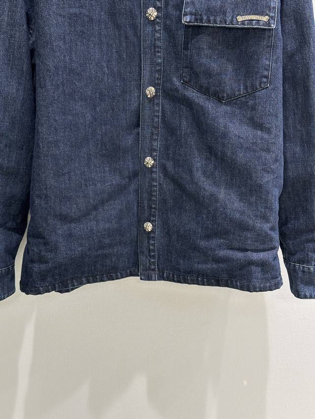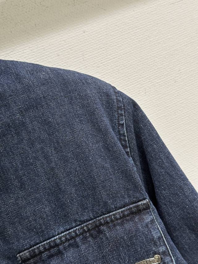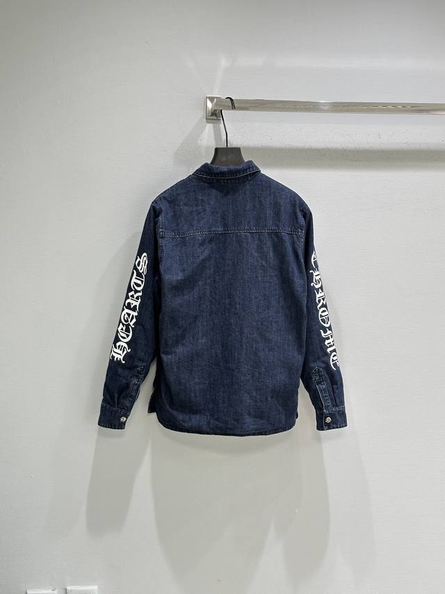 25Ss New Autumn/Winter Arrival! This denim shirt features a deep blue wash and a white logo, making it highly recognizable! Made of high-quality denim, it's durable and breathable, with a slightly padded lining, perfect for autumn. The logo print on the sleeves highlights the brand's identity. Available in blue (Sizes 1-15).