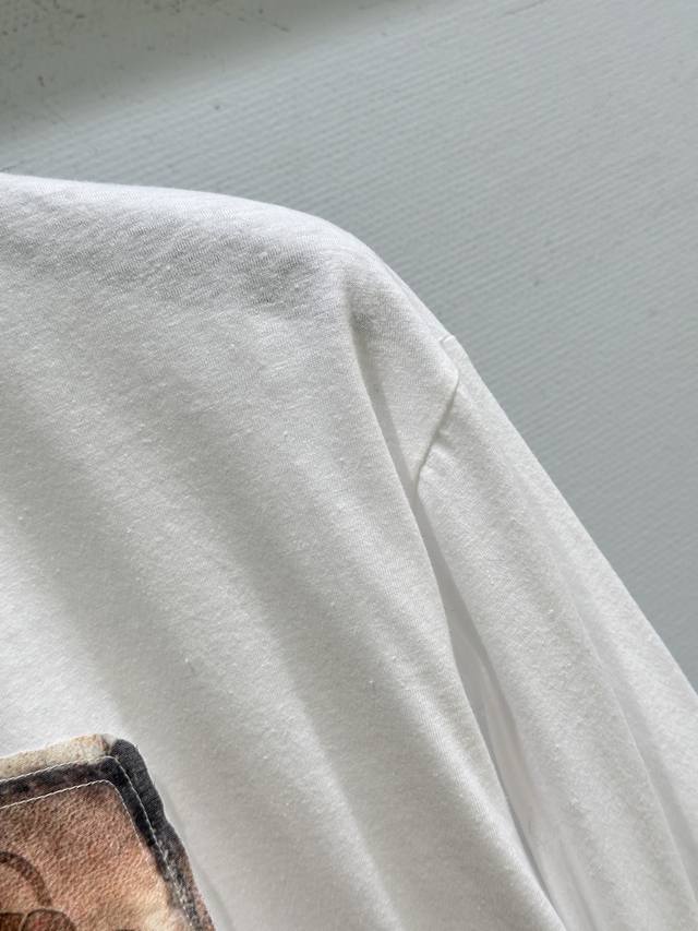 25Ss New Autumn/Winter Arrival! This round neck long-sleeved T-shirt is made of slub yarn cotton plain knit fabric, decorated with a seasonal digital bow print. The surface texture is delicate, giving it a retro effect. Unisex style, casual fit, hip-length. Available in white (Small, Medium, Large) DDD
