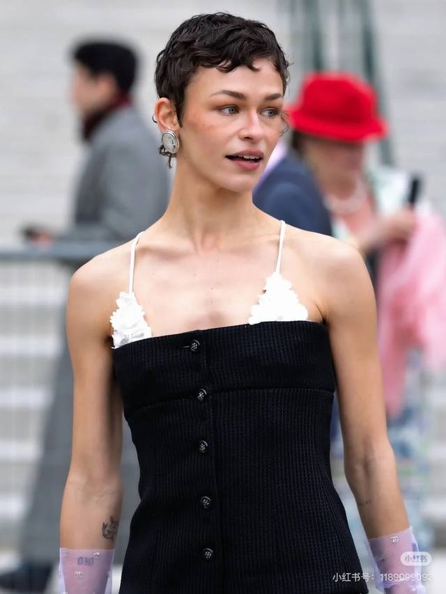 / 25Ss new black and white color matching three-dimensional flower knitted suspend