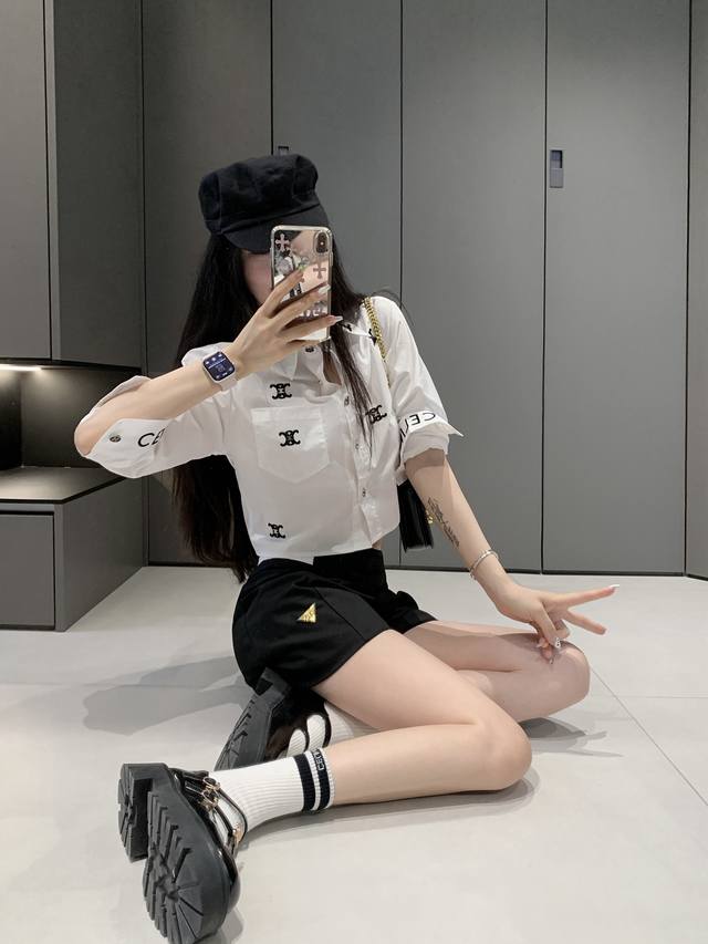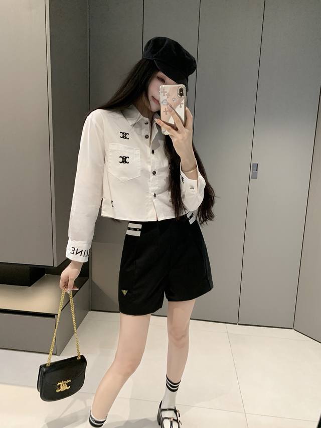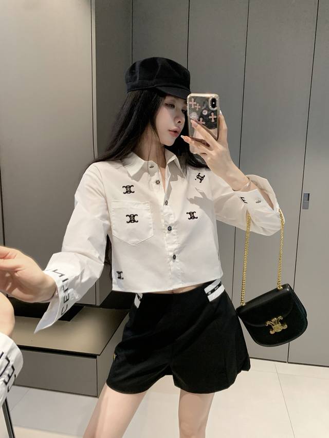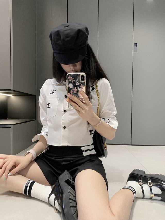 25Ss new Celin* letter shirt ~ exclusive design, one set, high-quality three-dim