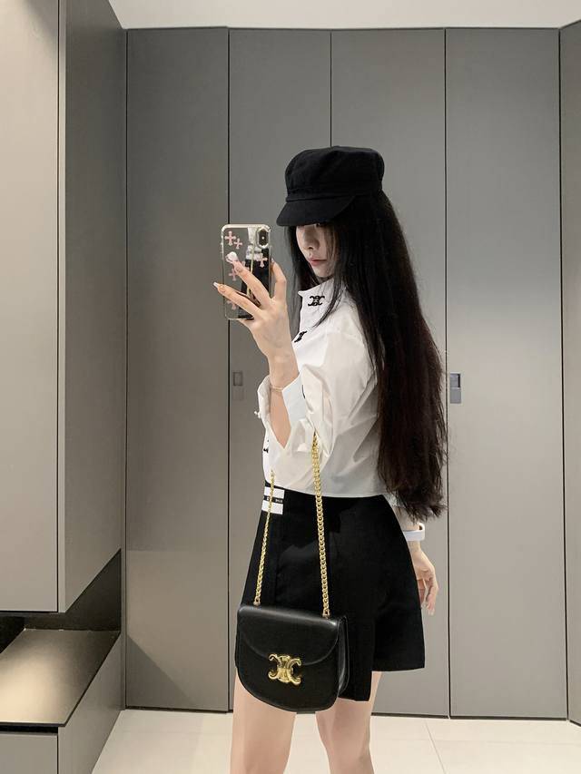 25Ss new Celin* letter shirt ~ exclusive design, one set, high-quality three-dimensional letter craftsmanship, the upper body of the model is a real shot of the big goods, white and black, Sml