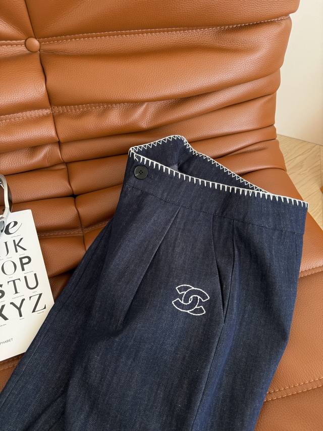 25Ss New double C pattern embroidered straight jeans are made of thin original denim fabric. They are light and not stuffy. They have a wide and straight feel. The shape of the pants is also very good. The waistband has a bright embroidery decoration that echoes the double C pattern. It has a vintage and fashionable feel. The wide-leg straight pants can easily make you look 1.8 meters long. One color, three sizes