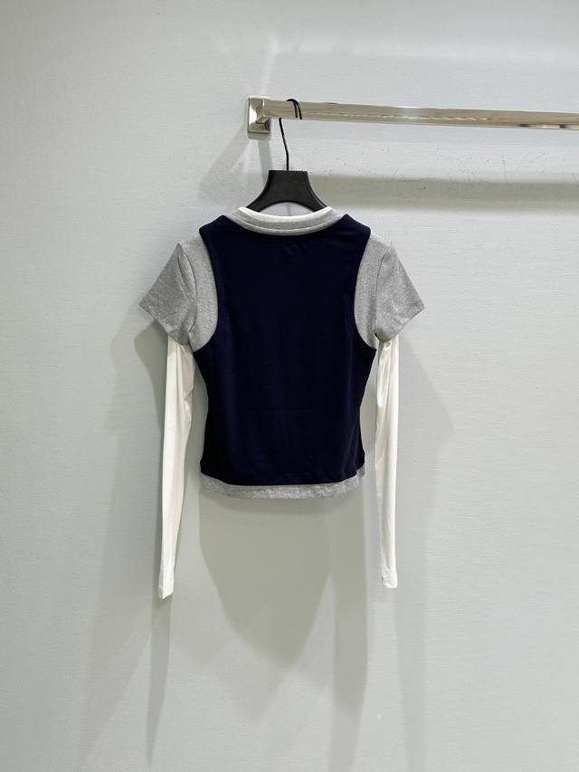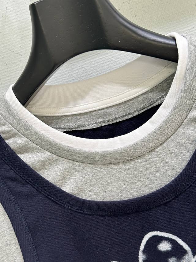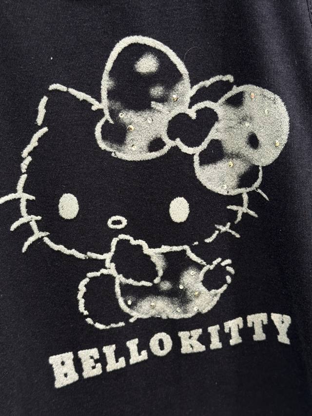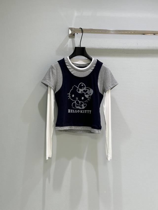 25Ss New Early Autumn Style! The T-shirt adopts a layered design. Kt cat appears playfully, and the bow on its head also has blingbling elements, as if it is glowing. It is so cute! The short version is very friendly to all body shapes! In stock: navy blue Sml