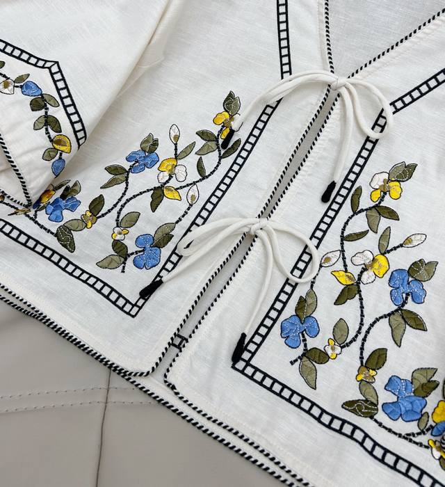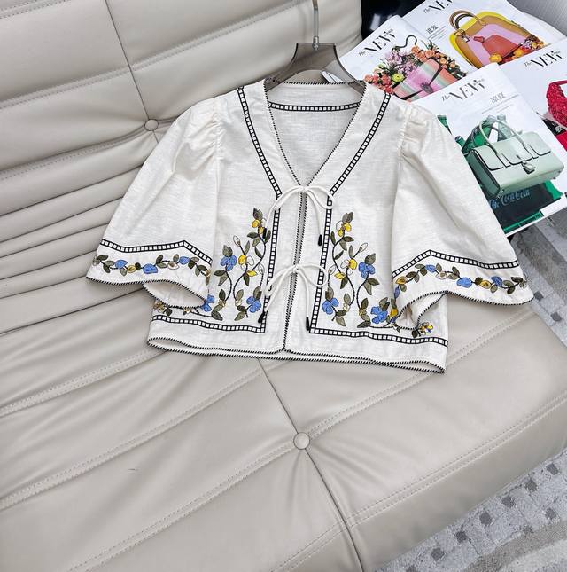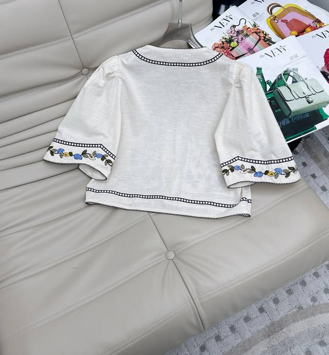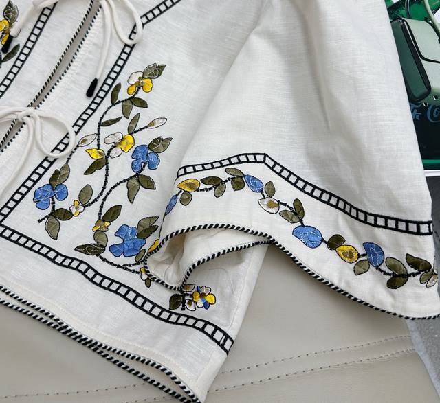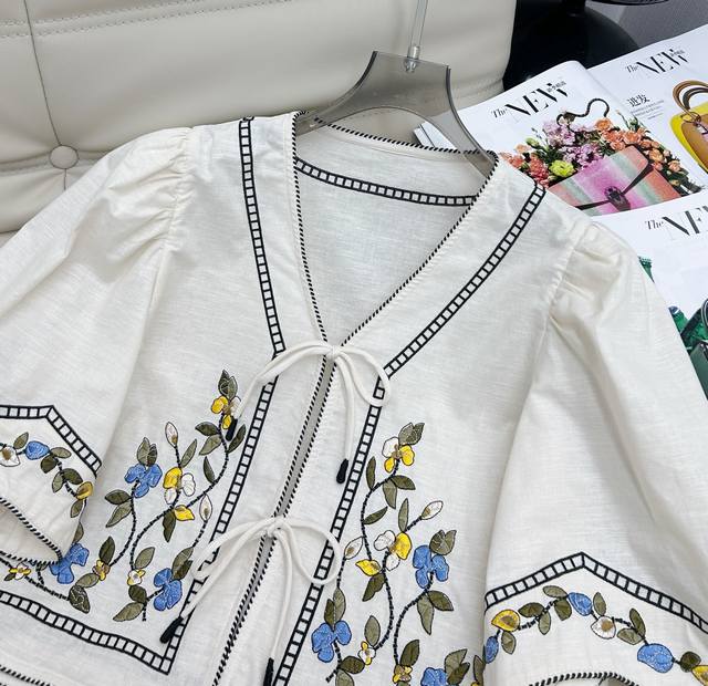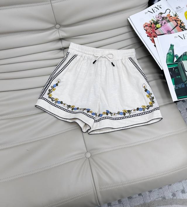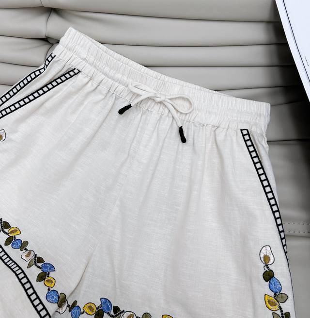 25Ss New embroidered loose top with high waist shorts, two-piece set. Relaxed su