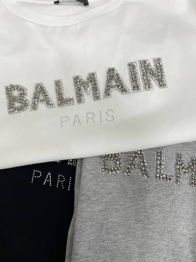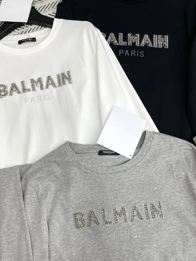 25Ss New Fall/Winter collection: Balmain's simple and versatile long-sleeved cotton T-shirt with hand-beaded and rhinestone lettering! Highly recommended! Highly recommended! Detailed workmanship and quality. Color: White, Black, and Gray. Size: Sml.