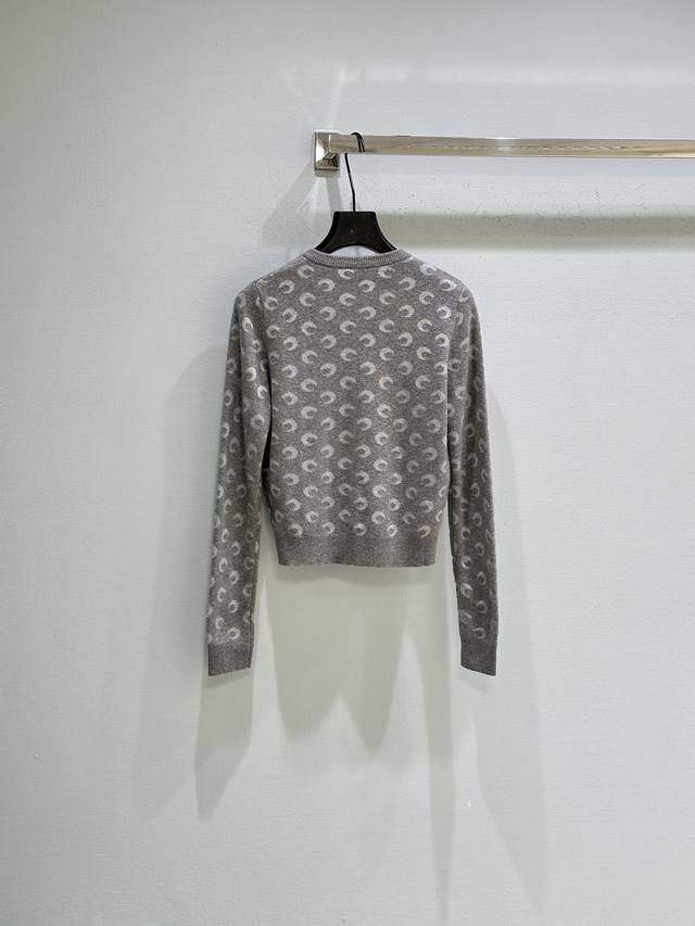 25Ss New Winter Arrival! Gray knit fabric with a full moon pattern, cropped cut, round neck design, button closure at the front for easy on and off. Perfect for everyday wear or layering~ In stock in gray Sml DDD