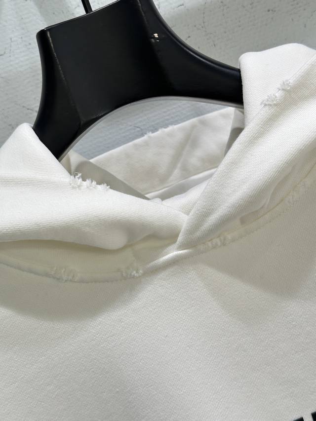 25Ss New Winter Arrival! High-weight hooded sweatshirt made of pure cotton, with a distressed finish and rubber logos on the front and back. Unisex, perfect for couples! Available in black and white, sizes S, M, L, DDD