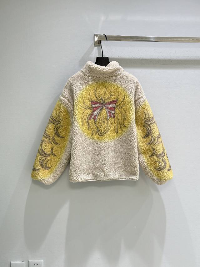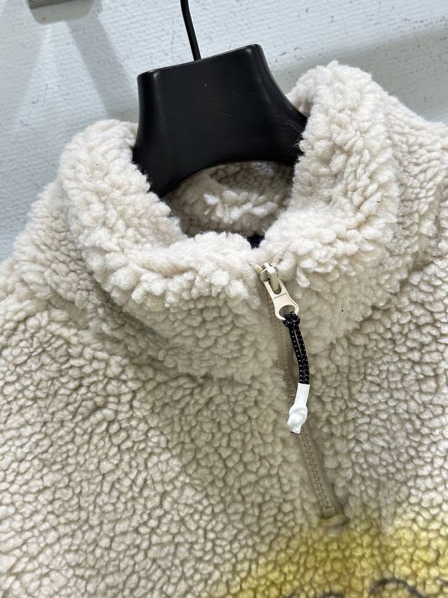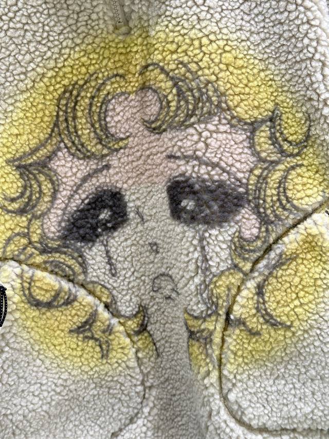 25Ss New Winter Arrival! Iconic crying girl print + lamb's wool material, soft and warm! Stand collar with half-zip design, super easy to put on and take off, and can be layered for added style~ In stock in apricot Sml DDD