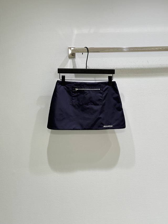 25Ss New Winter Arrival! Inspired by 90s archive style, this technical gabardine skirt blends sporty elements with exquisite craftsmanship. A front zip pocket highlights refined workmanship, while a soft fleece lining adds to its charm. Available now in navy blue, sizes S, M, L, DDD.