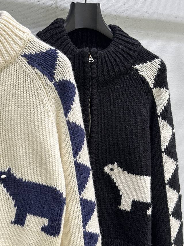 25Ss New Winter Arrival! Polar Bear Knit Cardigan from the Ski Resort Collection. Features a zipper for easy on and off, raglan sleeves with polar bear jacquard, and a relaxed fit for comfort and style. Perfect for skiing or everyday wear, a winter wardrobe essential. Available in white and black, sizes S, M, L, DDD.