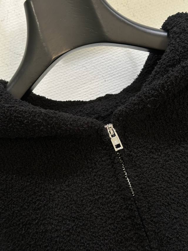 25Ss New Winter Arrival! Super soft black plush material, incredibly comfortable for autumn and winter! Short design with hood and zipper, simple yet detailed, loose fit for a relaxed and casual look. The small label at the hem is highly recognizable~ In stock, black S, M, L, DDD