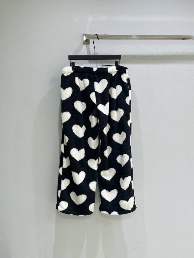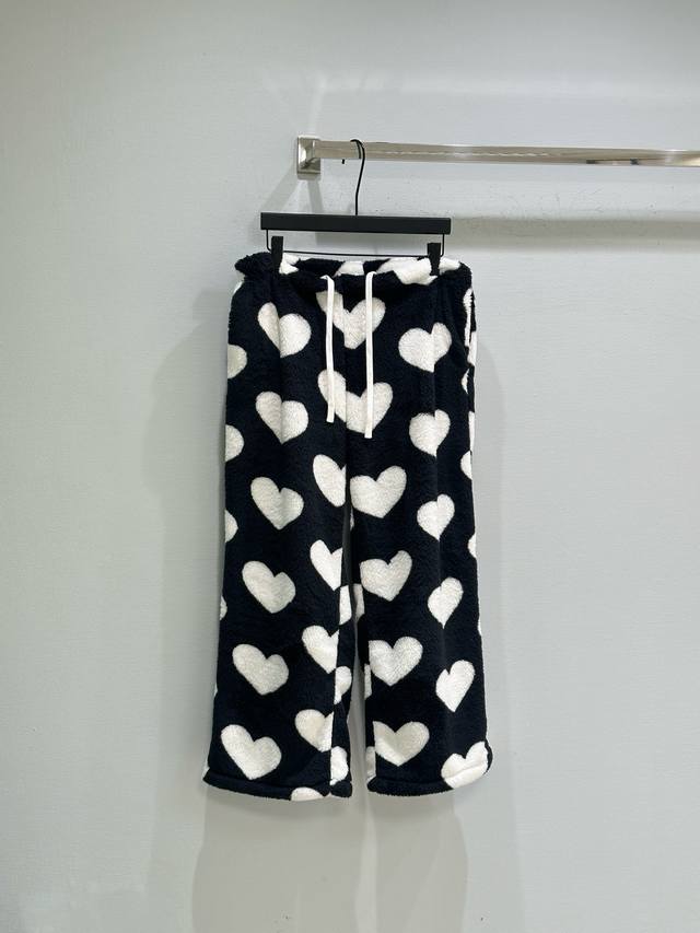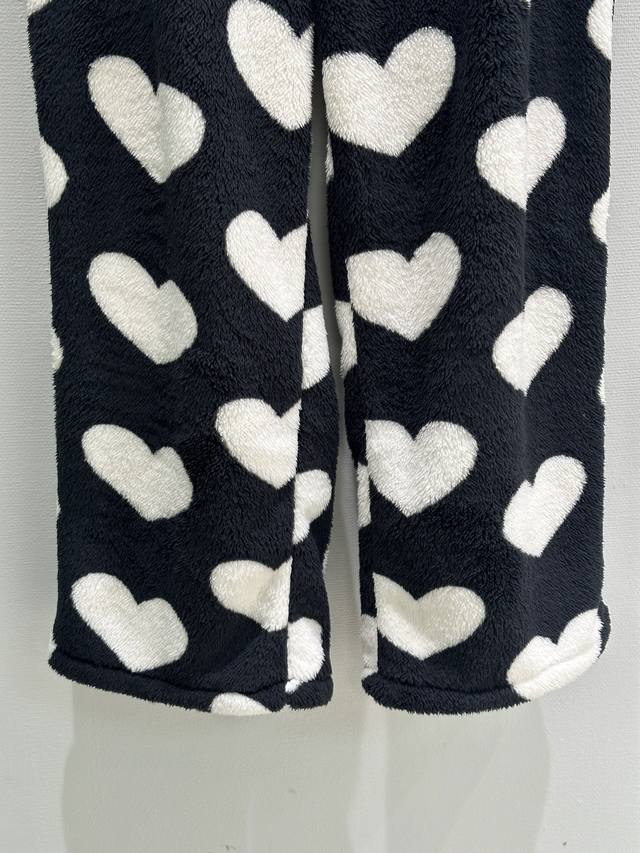 25Ss New Winter Arrival! Thickened plush fabric, soft to the touch, loose fit with elastic drawstring waist for easy on and off. The plush heart design is simple yet playful. Super warm and comfortable for autumn and winter. Available in white and red (Small, Medium, Large).