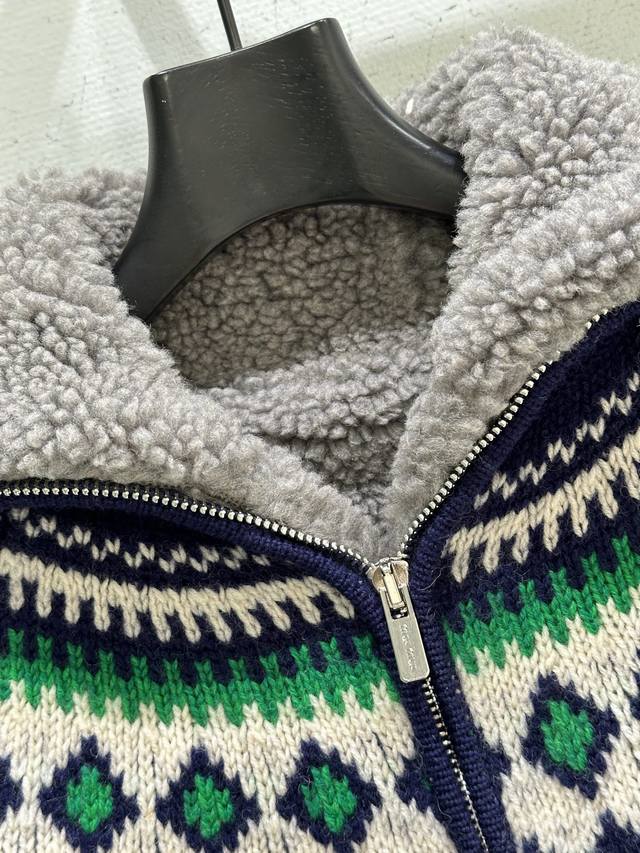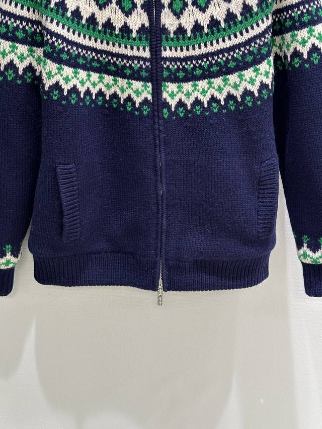 25Ss New Winter Arrival! This wool cardigan features a classic Scottish pattern that elevates its lines and texture, while the seamless construction and fleece lining combine the charm of traditional knitwear with modern technology and style. Navy blue Sml DDD available in stock.