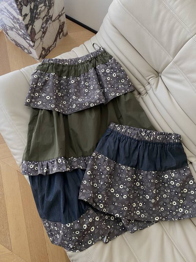 25Ss Spring and Summer African Daisy Patchwork Series Skirt Small A-shaped versi