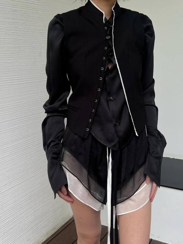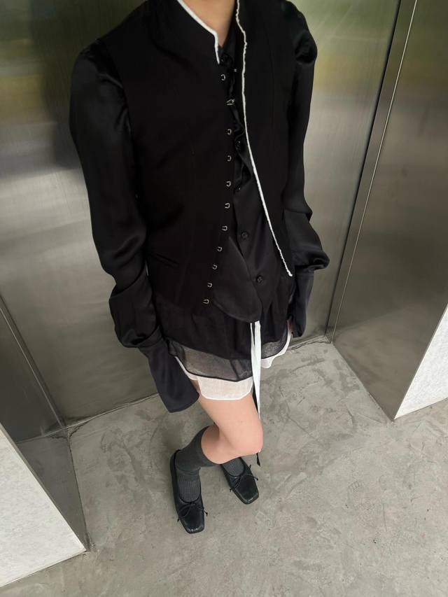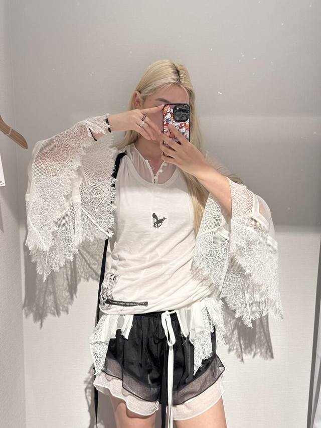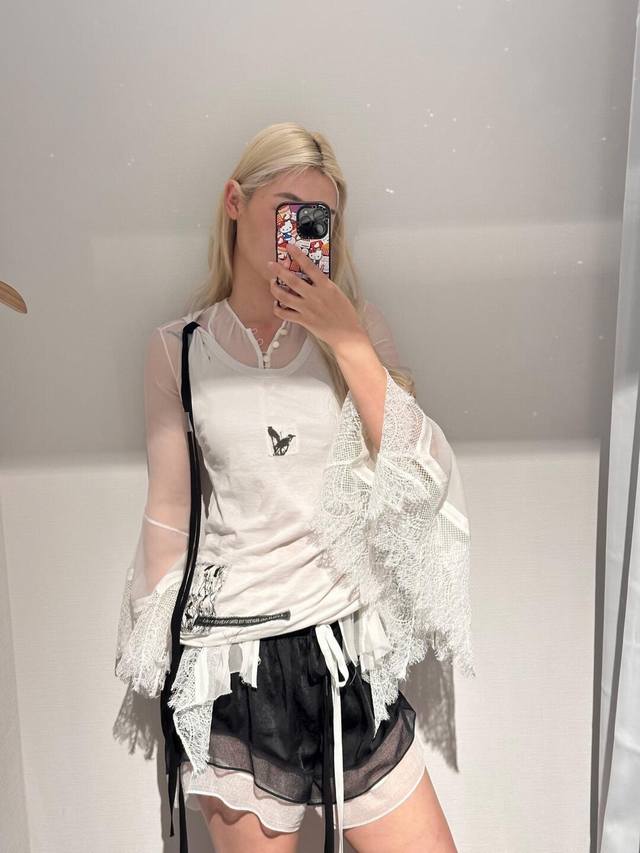 25Ss Spring and Summer Ann Demeulemesster Dark Double-layered Shorts High-quality Lace Stitching. Sml