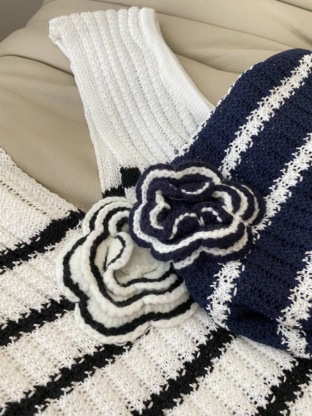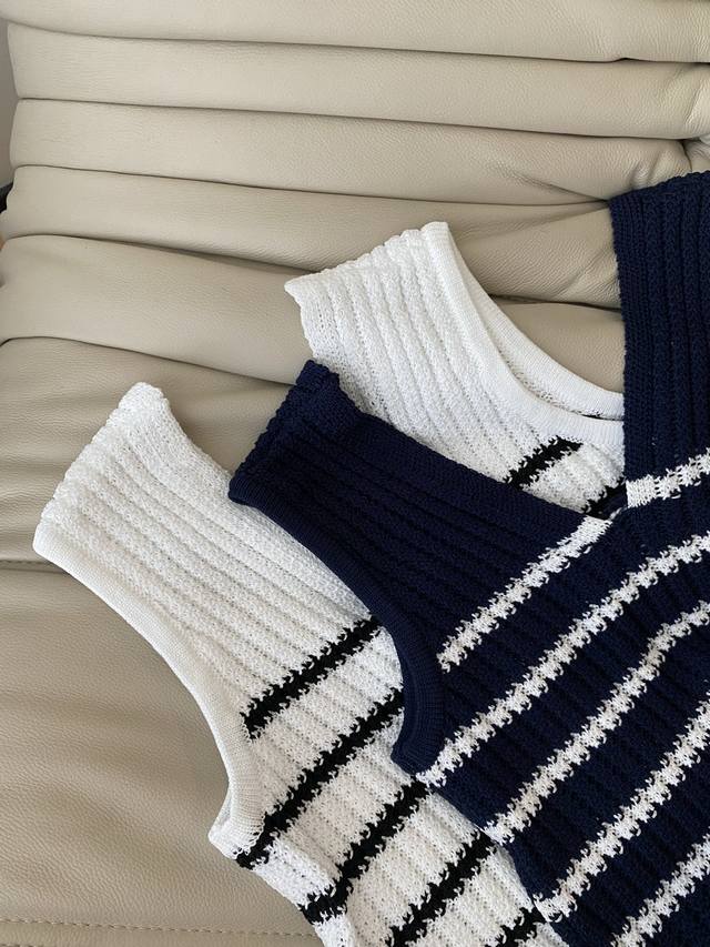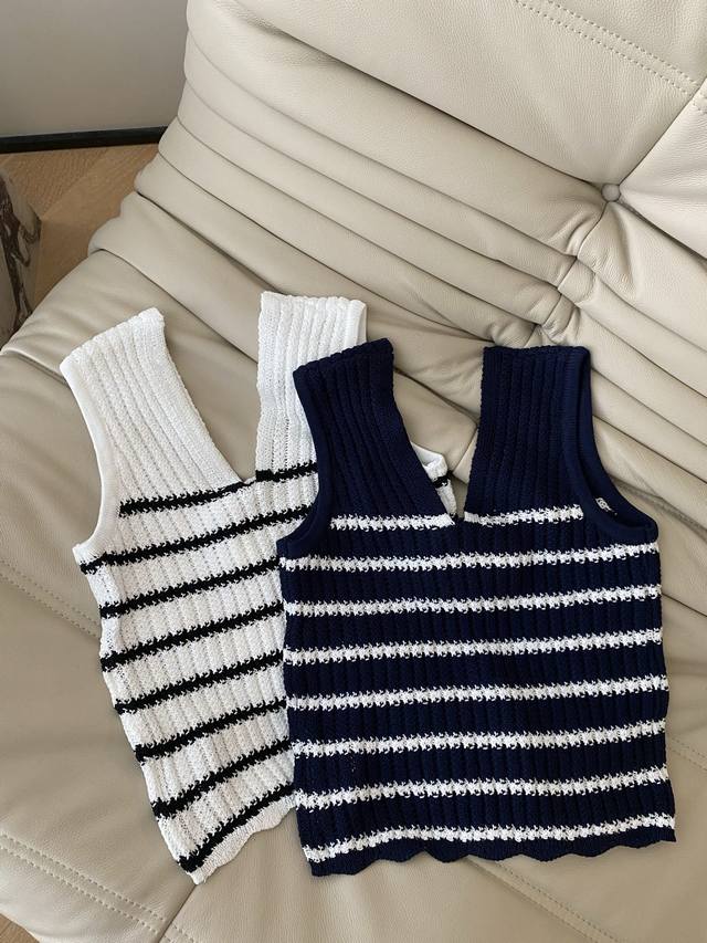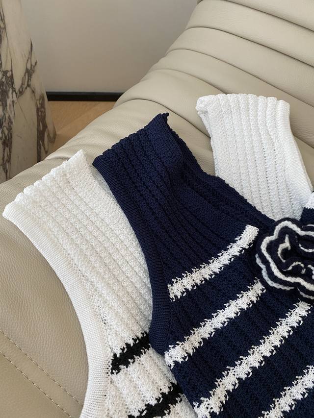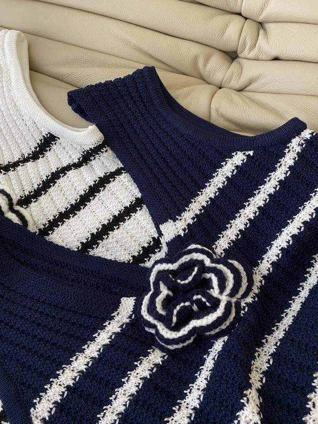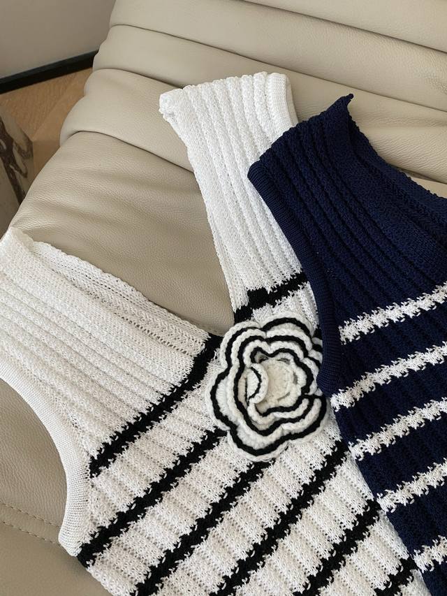 25Ss Spring and summer striped corsage knitted vest with exquisite flowers on th