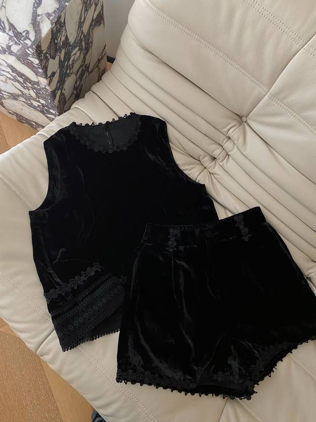 25Ss Spring and summer velvet water-soluble flower vest shorts set. The fabric i