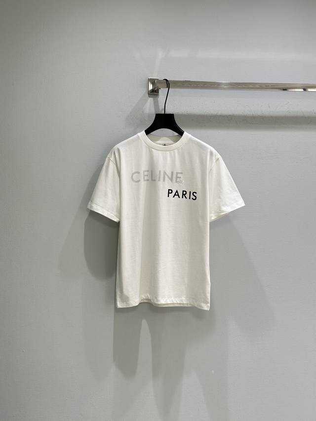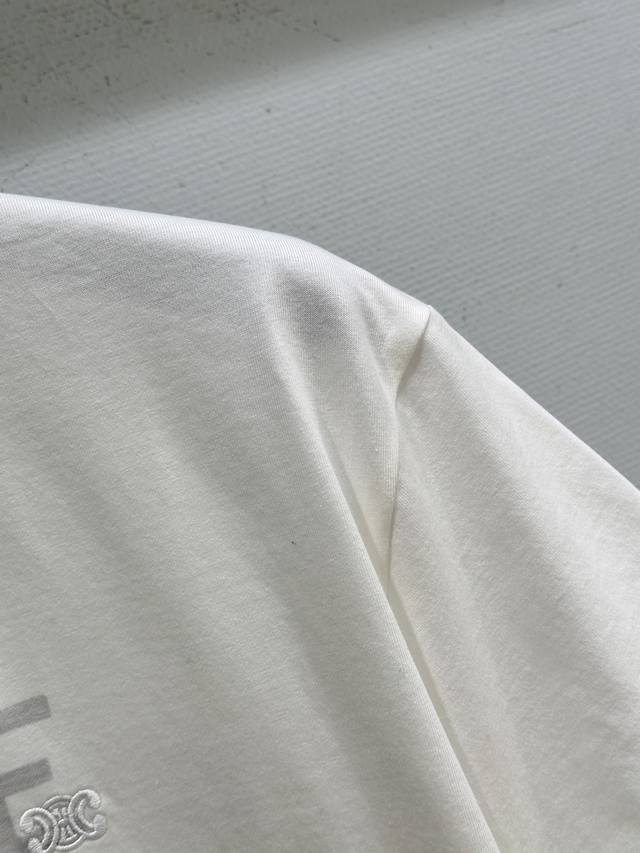 25Ss Winter New Arrival! Ce26 Early Spring Runway Short-Sleeve Printed T-Shirt with Letter Print and Embroidery on the Chest. Simple White T-Shirt, can be paired with jeans! In Stock White Sizes 5ml 6DD