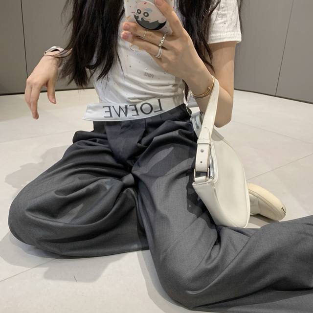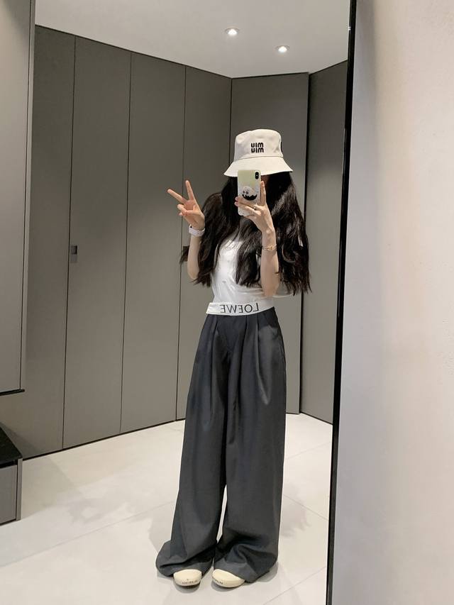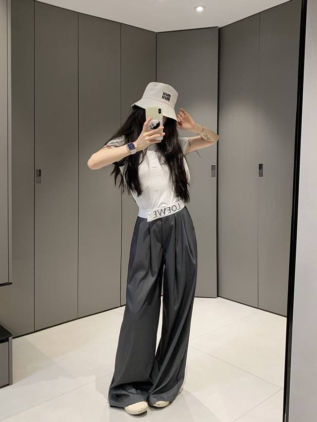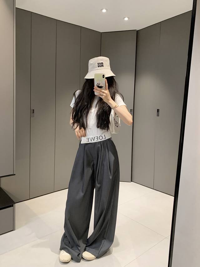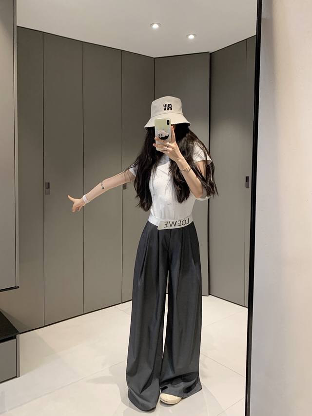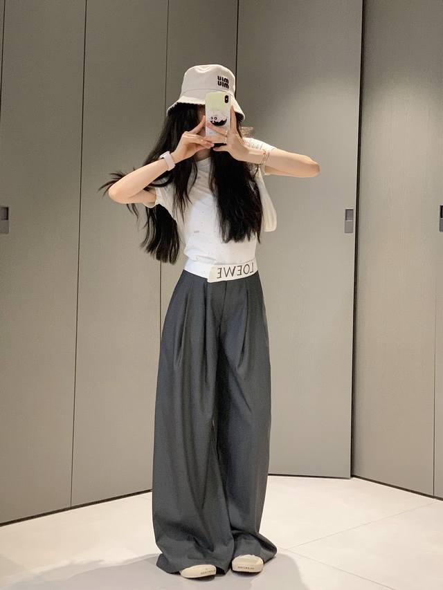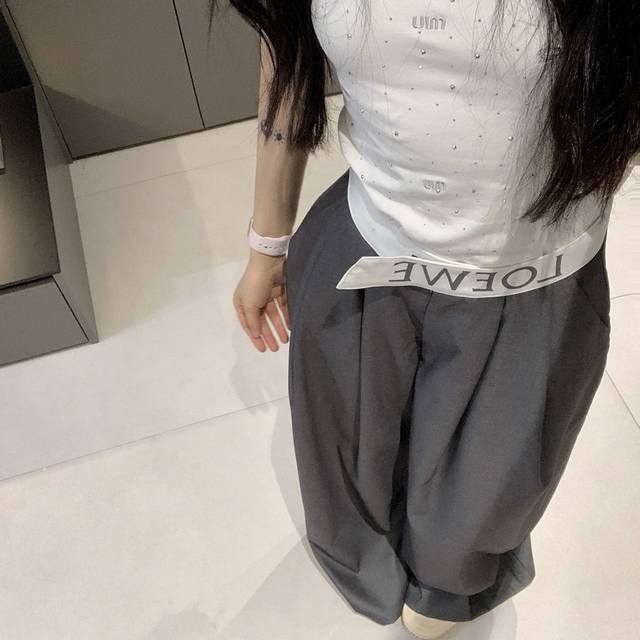 25Ssloew*Splicing letter waist wide-leg pants trousers ~ Exclusive design, splic