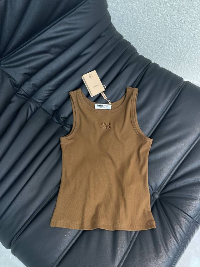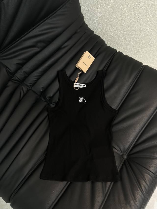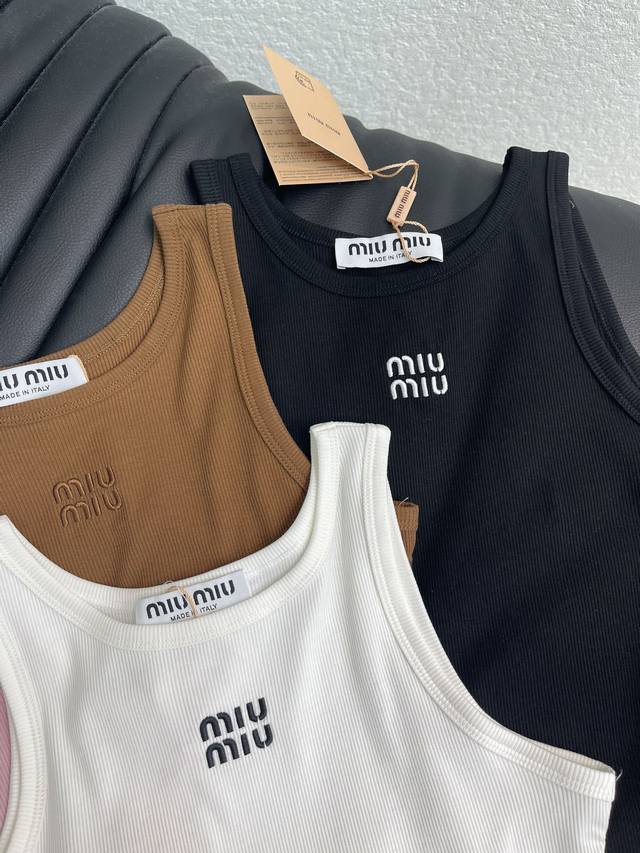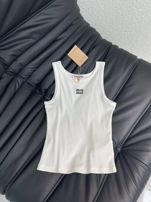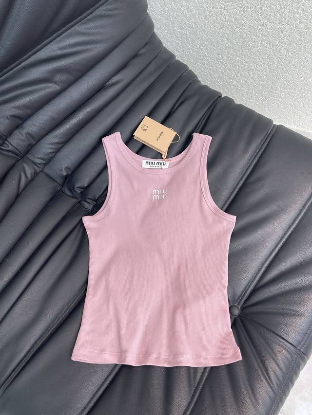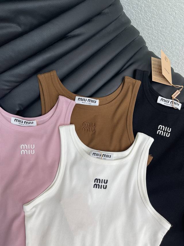 26 Spring/Summer New Arrival: Miu Four-Color Embroidered Letter Ribbed Cotton Vest, Custom Elastic Ribbed Cotton Fabric, Embroidered Letter Craftsmanship, Elastic Fit, Ddd, 4 Colors Available: Sml Aa DDD