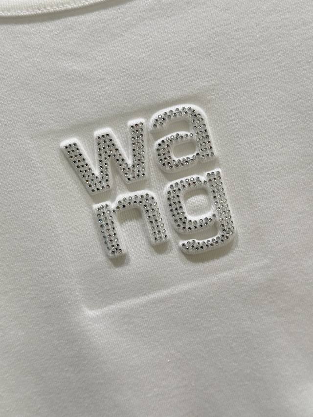 26Ss Early Spring New Arrival! Cotton plain knit fabric with rhinestone logo on