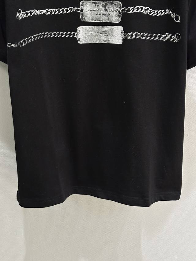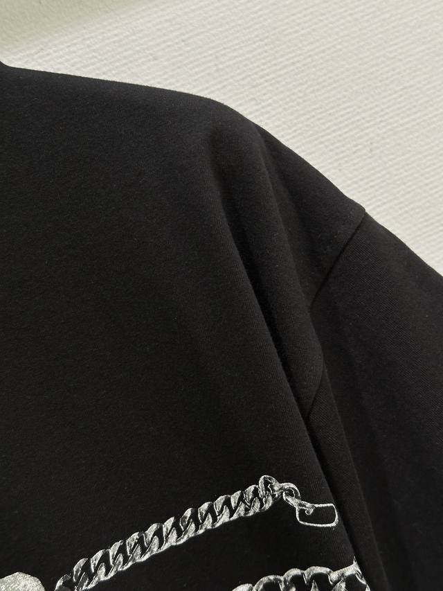 26Ss Early Spring New Arrival! Metal chain print, super high-street style! High-quality pure cotton fabric, loose fit, unisex. In stock in black and white, S, M, L, DDD