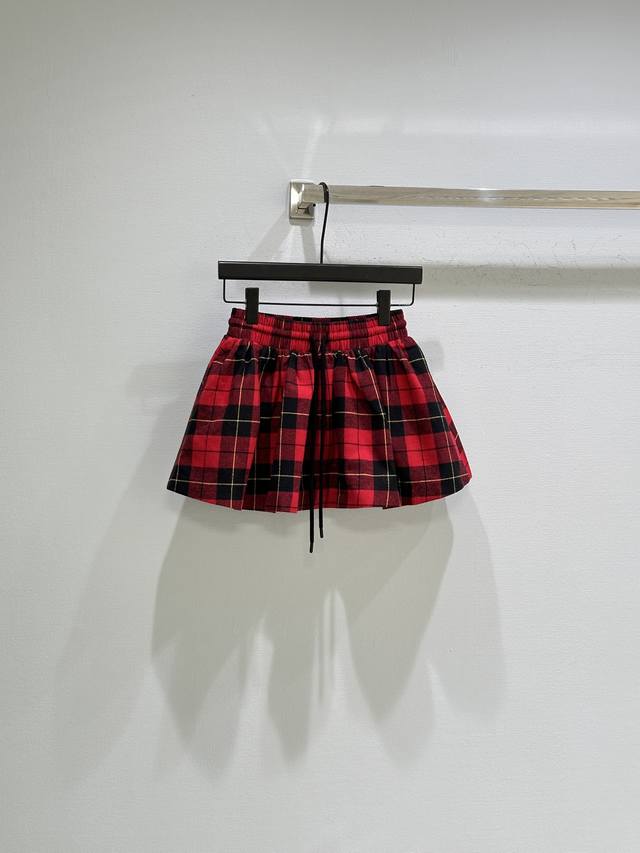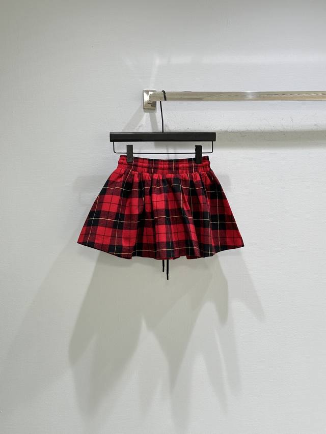 26Ss Early Spring New Arrival! The black and red plaid skirt has a beautiful color combination! The culotte design prevents any wardrobe malfunctions; perfect for New Year's Eve and Christmas outfits, great for photoshoots. A must-have for plaid lovers! In stock, black and red plaid Sm DDD