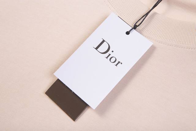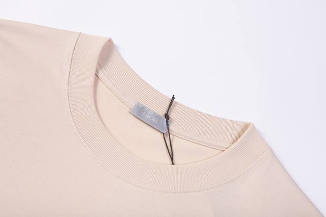 3220, high-end customization, exclusive and highest quality version of Dio*'s logo embroidered round neck short-sleeved T-shirt, using exclusive customized 290G original 1:1 double-strand double-yarn pure cotton fabric, custom-woven and dyed in the same vat without color difference ribbing, customized 1:1 accessories, three labels complete, oversize loose version, fine workmanship and perfect, fabric is soft and comfortable and does not deform, the same style for men and women, different market versions, specializing in high-end top products, welcome to compare the quality at will.