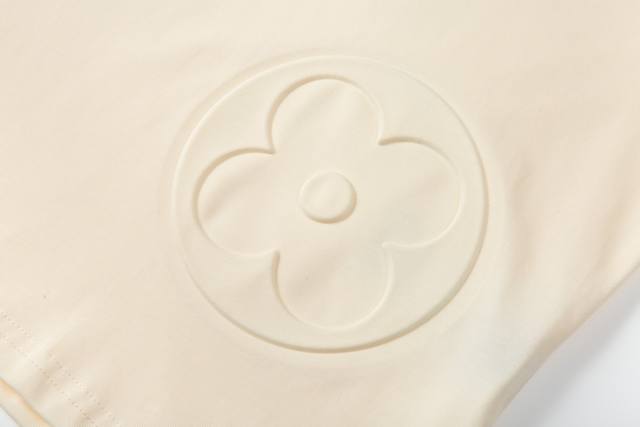 5201 , high-end customization, exclusive and highest quality version L* embossed round neck short-sleeved T-shirt, using exclusive customized 290G original 1:1 double-strand double-yarn pure cotton fabric, custom-woven and dyed in the same vat without color difference ribbing, customized 1:1 accessories, three labels complete, Oversize loose version, fine workmanship, perfect workmanship, soft and comfortable fabric without deformation, same style for men and women, different market versions, specializing in high-end top products, welcome to compare quality at will.