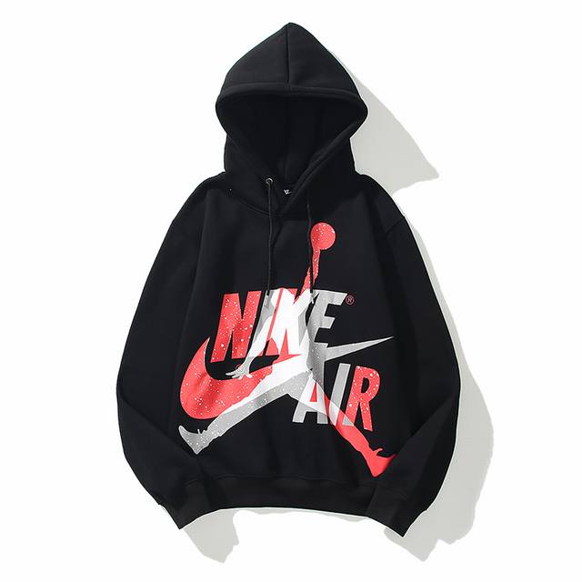 8002#Aj flying man joint model plus velvet sweater black and white M-Xxl DDD