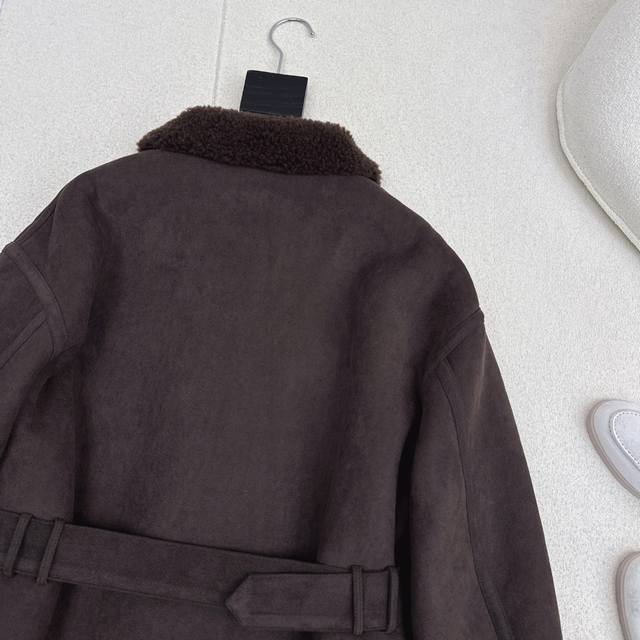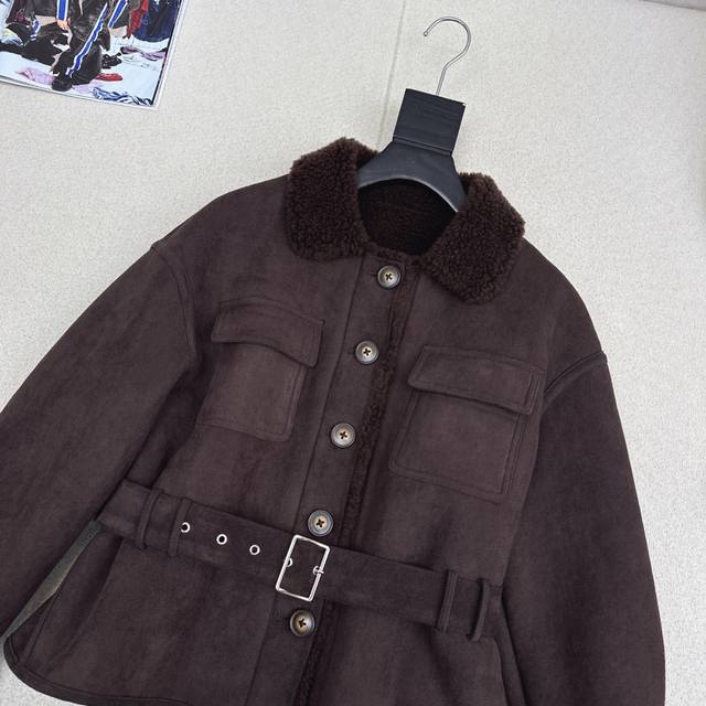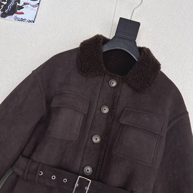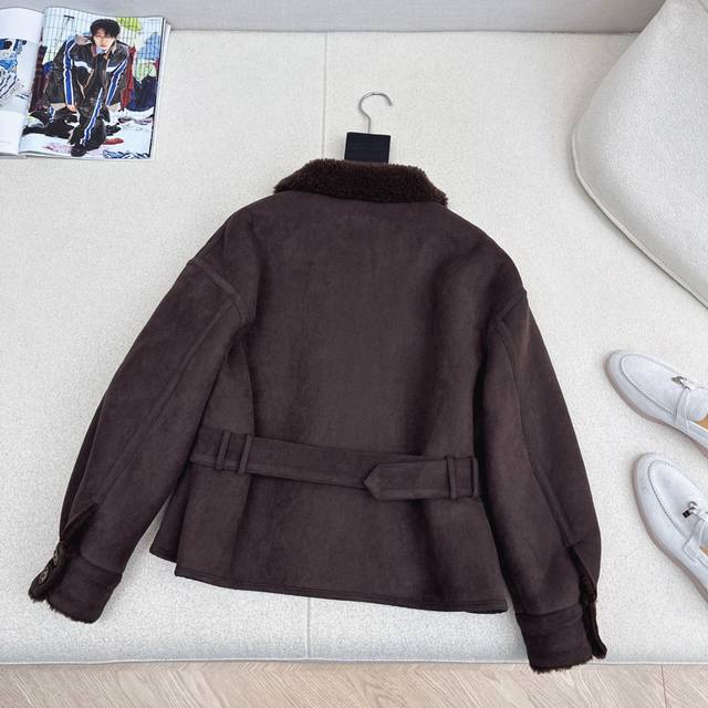 A classic old-money style fashion Slp30Ss Autumn/Winter Newest Eco-friendly Suede Teddy Lined Stylish Jacket Low-waisted with a belted design, full of retro American style, rich and fashionable, super youthful, the low-waisted belt easily divides the body into a 3:7 ratio, making you look taller and slimmer. The sheepskin lining adds warmth. Two colors available now. Sizes Sm and M: Bust and Length 56cm. Manual measurement may have errors. p610 DDD