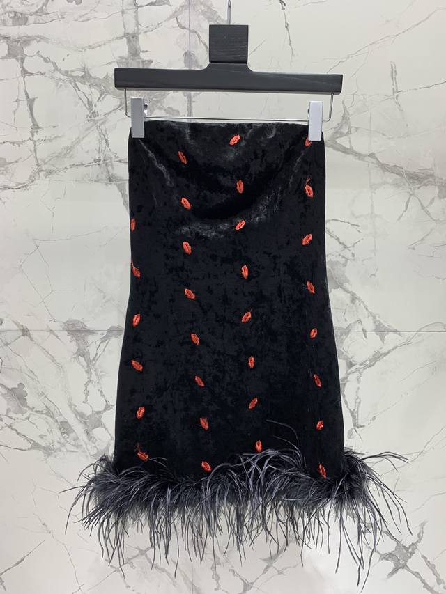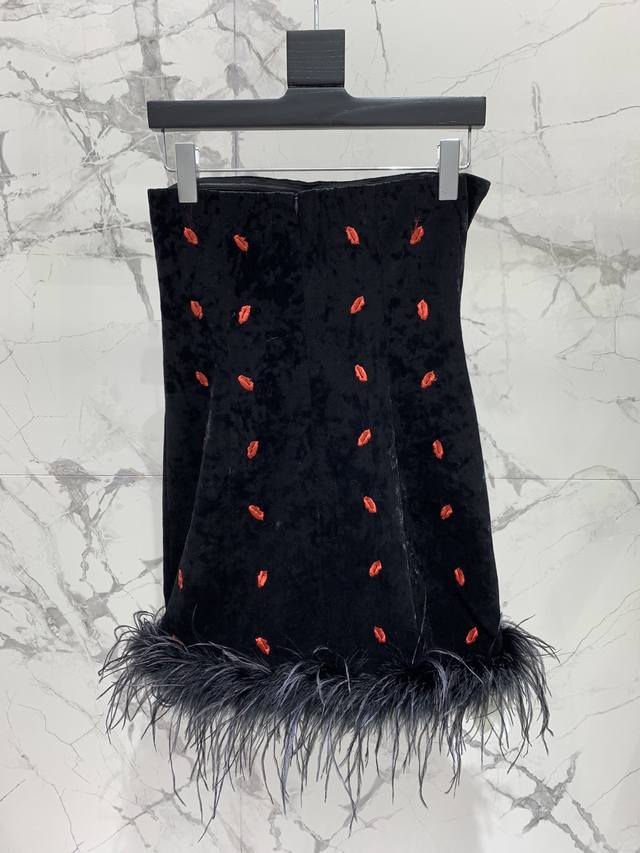 A Gorgeous Choice: Red Lip 3D Embroidered Strapless Dress DDD This red lip 3D embroidered strapless dress is absolutely breathtaking! Its design is full of artistry, as if you're wearing a painting