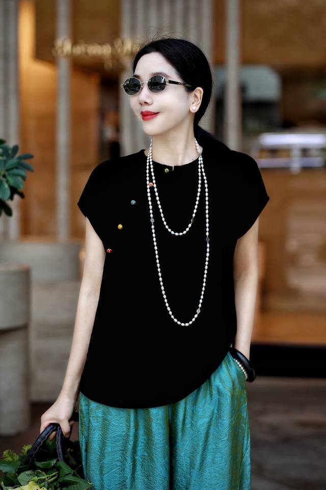 A hot-selling item that keeps turning over! High-definition original camera photography without beauty filters! Top made of 100% mulberry silk velvet! Active dyeing that won't fade! Slanted placket with multicolored bone buttons! M-Xxl