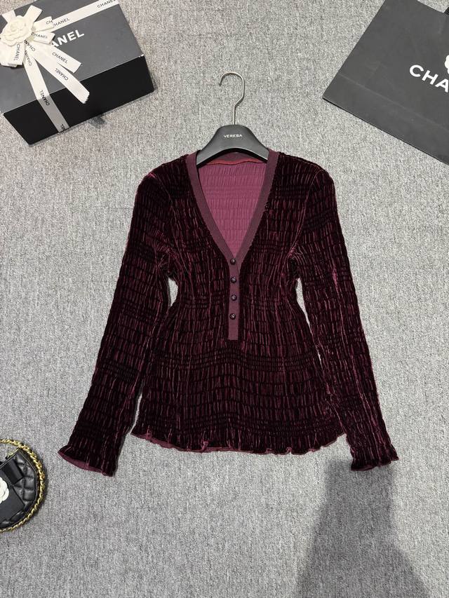 Elegant and intellectual beauty~Silk velvet V-neck pullover blouse with a touch of elegance!