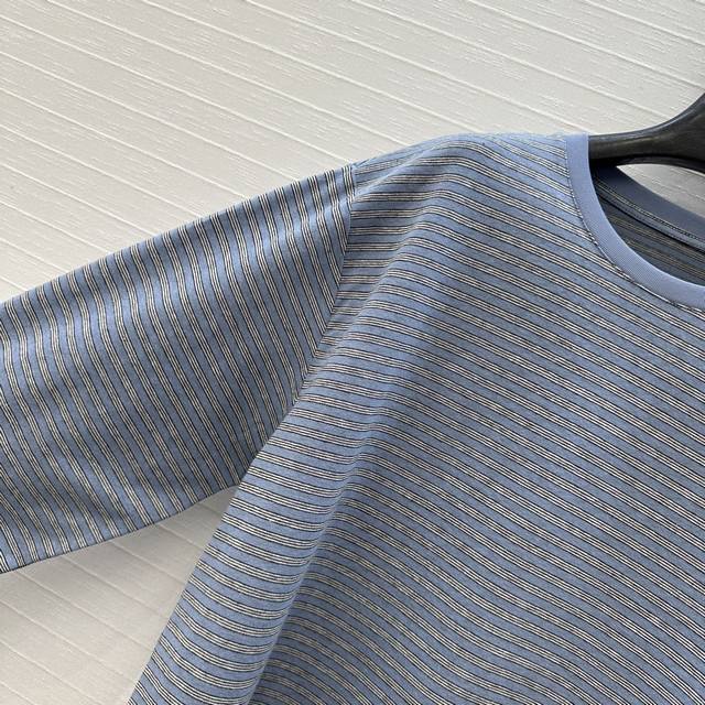 A must-have bestseller! Row-style thin striped crew neck cotton base layer top. The fresh and simple striped color scheme is versatile and suits everyone. The signature loose fit creates a relaxed, slim silhouette, perfect for casual everyday looks. Textured striped fabric. Two colors in stock, sizes 0, 2, and 4. Large orders welcome! Size 2: Shoulder width 48cm, Bust 104cm, Length... DDD