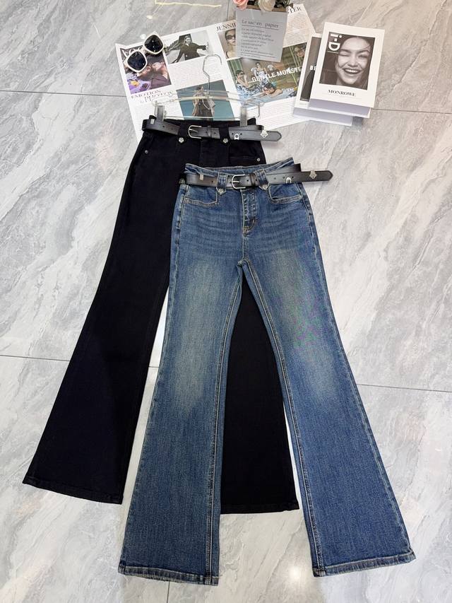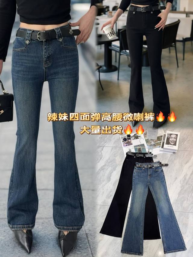 A must-have for hot girls going out, high-waisted flared jeans, made of four-way stretch fabric, comfortable and slimming~ Retro denim blue and classic black, easily adaptable to various styles. The high-waist design lengthens the leg line, and the flared pants hide the flesh and make the legs straight. Paired with a cropped top, you can instantly become a perfect figure. It is super cool for daily outings and dates. Whoever wears it will look hot Smlxl