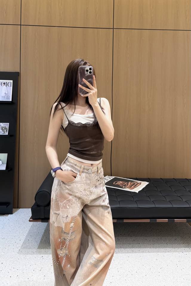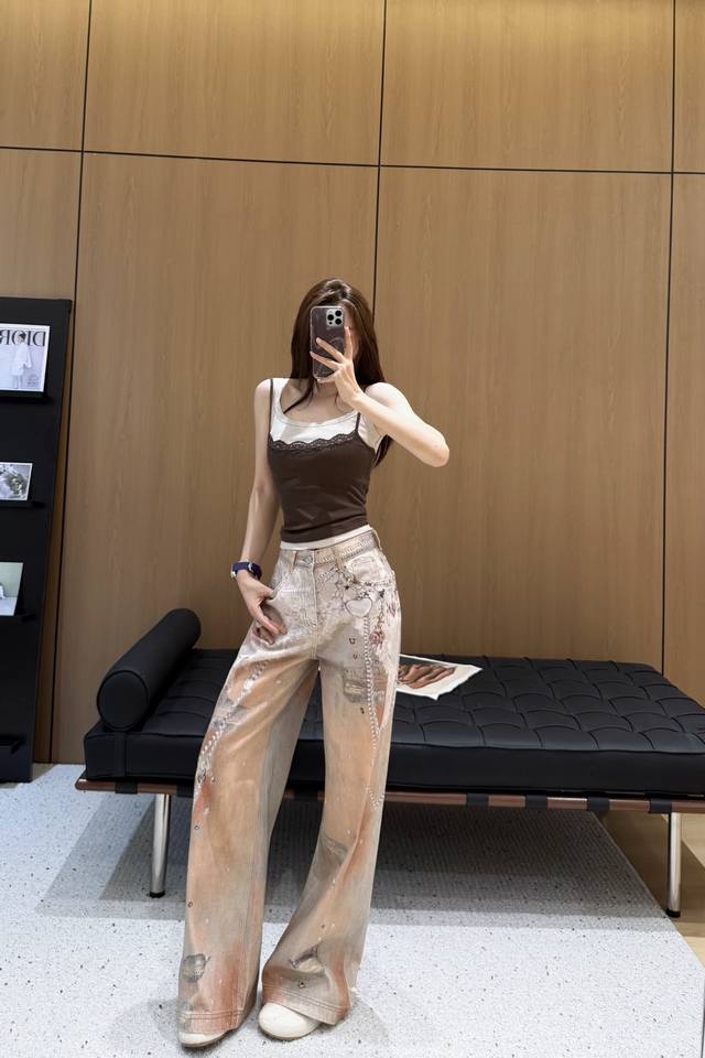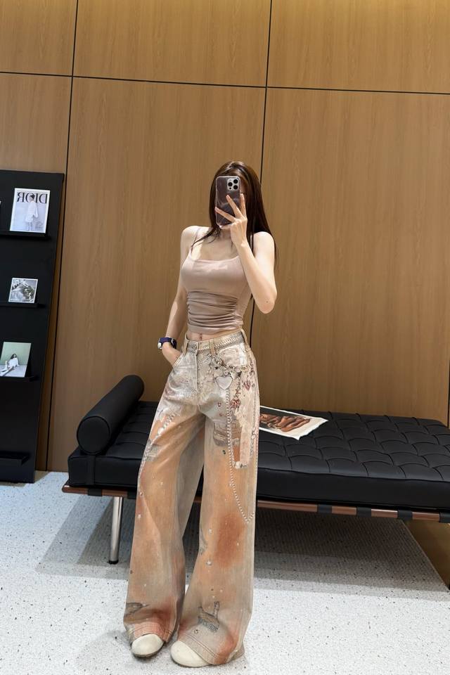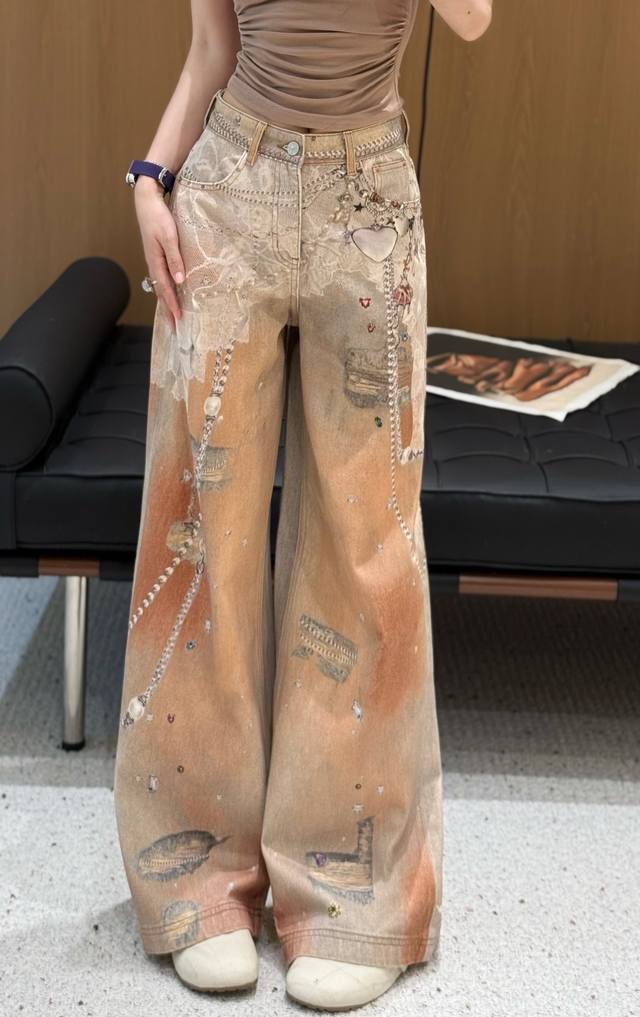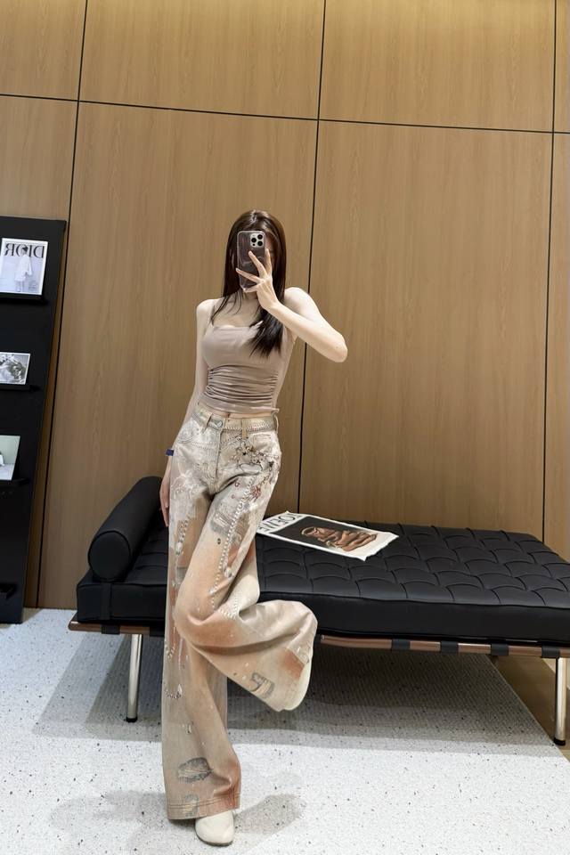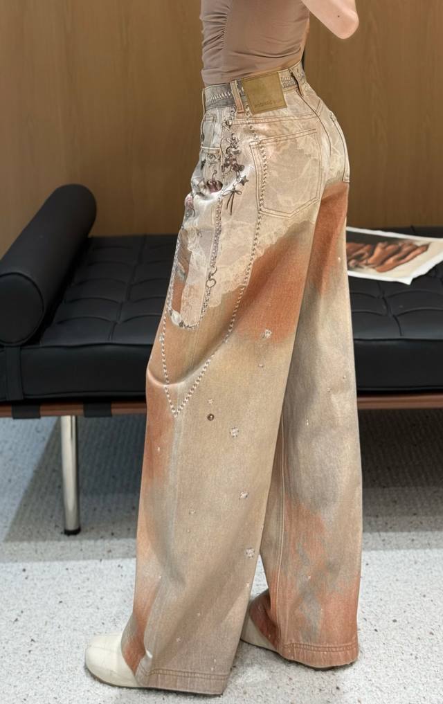 Acne* hot jeans shipped, custom fabrics, 5D printing, retro patterns, wide-leg version, upper body super cool, everyone must have, crotch explosion