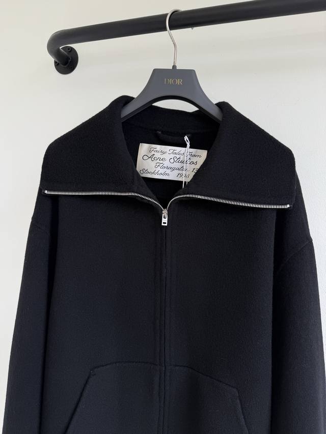 Acn25 Autumn/Winter New Solid Color Wool and Cashmere High-Neck Zipper Loose Fit Coat - Available Now. The formal feel of the virgin wool and cashmere combined with three-dimensional tailoring defines the style of this coat. The haute couture cut emphasizes structure and comfort. In Stock: S, M, L,