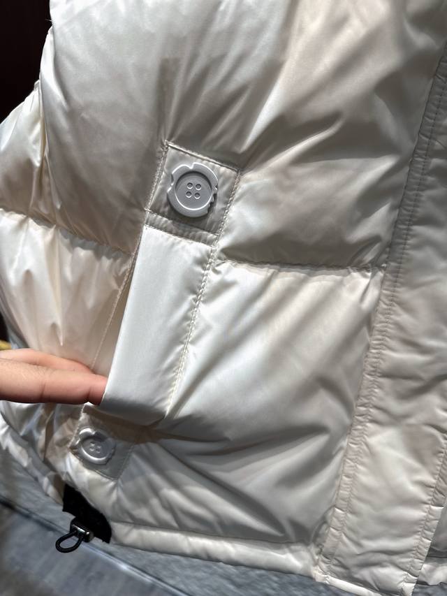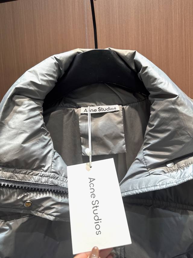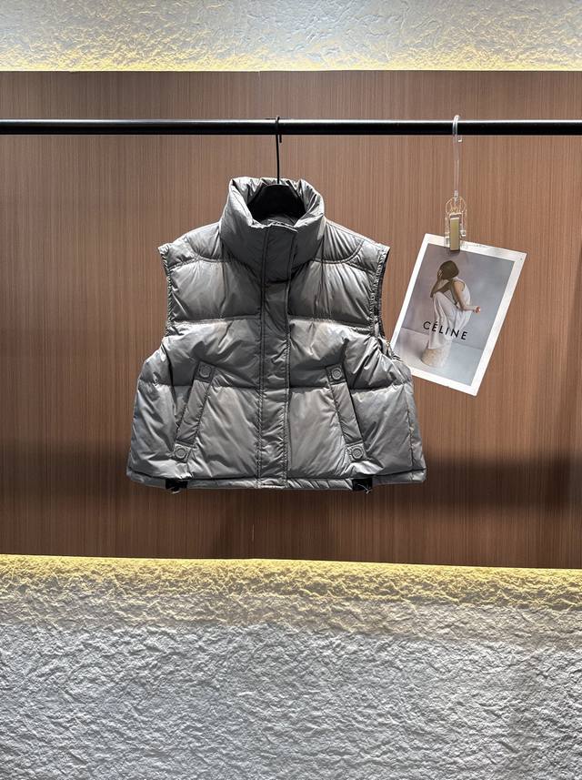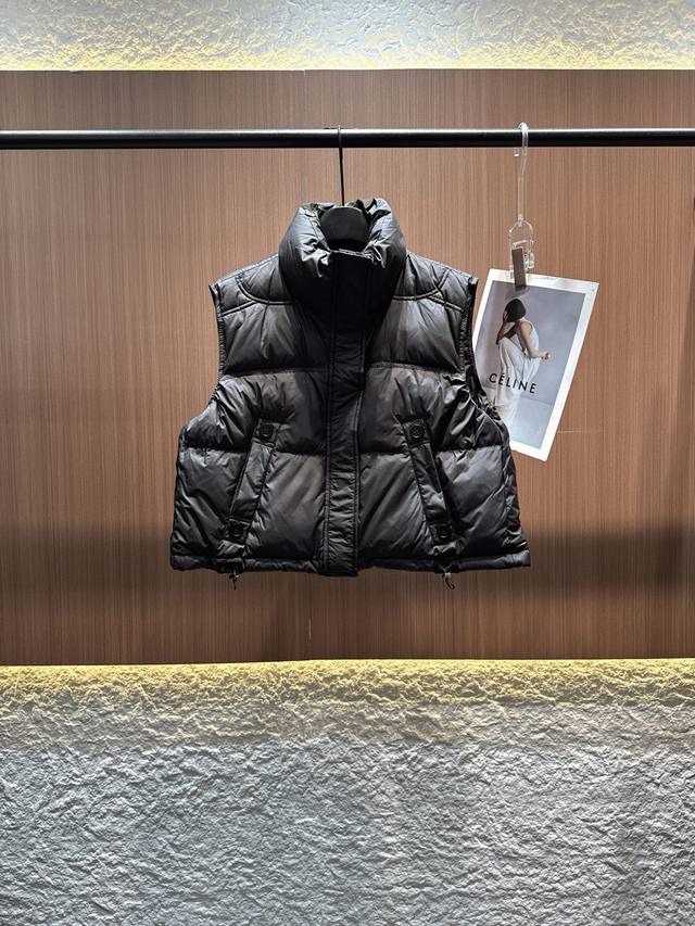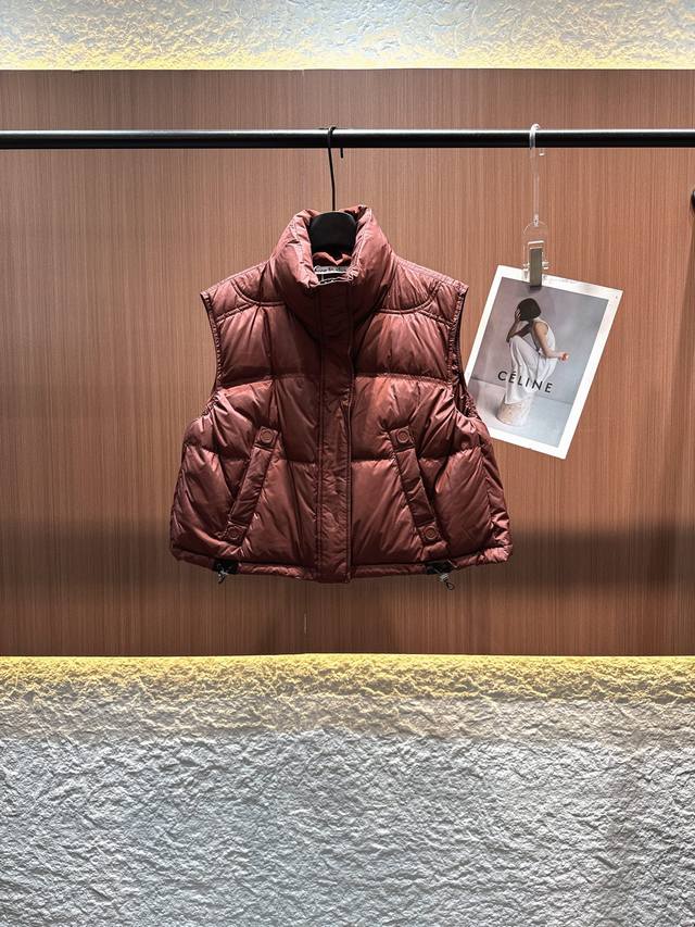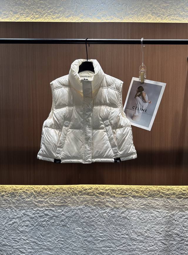 Acne 2025 Autumn/Winter New 90% Down Stand Collar Drawstring Hem Vest. Filled with 90% high-loft down for maximum warmth. The stand collar design is neat and stylish, and the cropped style elongates the waistline, making it versatile and flattering for all body types. 3D quilting ensures even distribution of down, preventing clumping. Practical and chic side pockets and an adjustable drawstring hem allow for easy switching between a casual and sophisticated look. A must-have for layering in autumn and winter, unlocking a dual experience of warmth and style. Available in black, white, gray, and red (Sizes S, M, L).