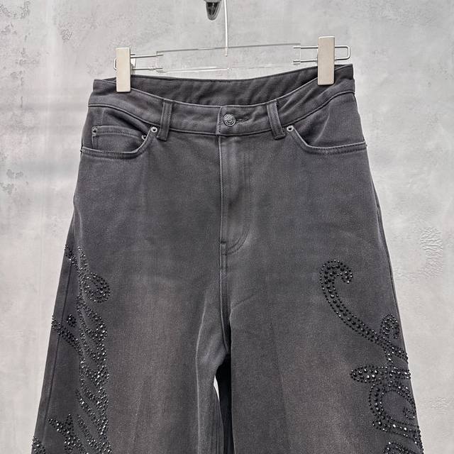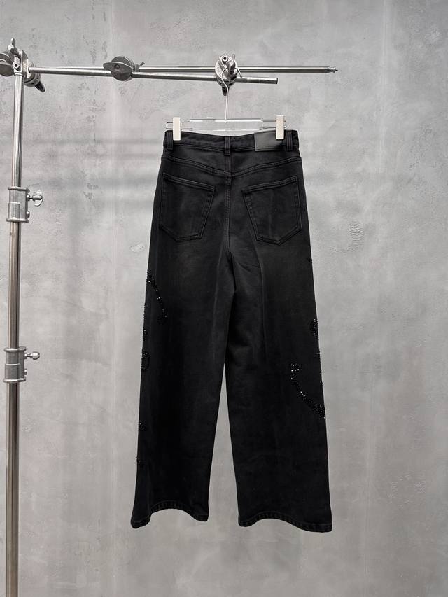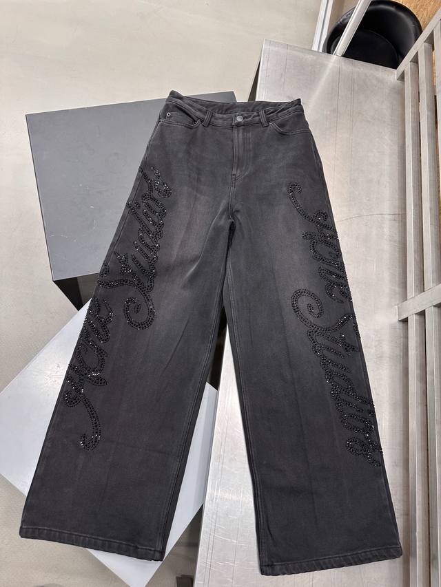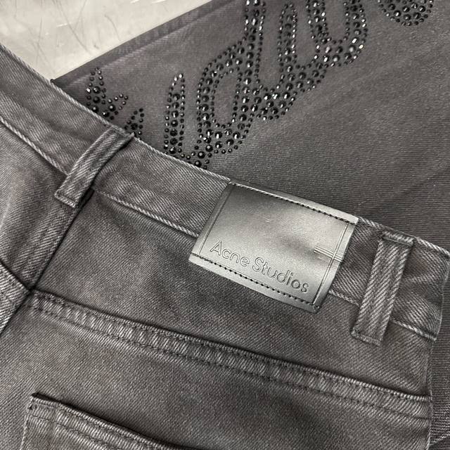 Acne | New fleece-lined jeans, garment-washed distressed finish with large-area rhinestones, fleece-lined for warmth, denim composite fabric, stylish and casual, sizes S, M, L, D, D