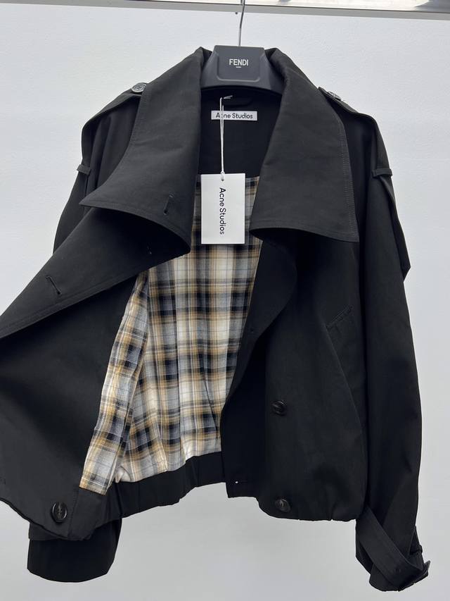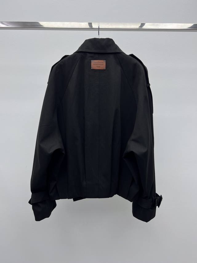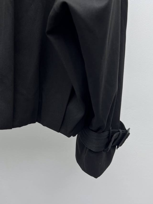 Trench coat-style straps at the shoulders, drawstring cuffs