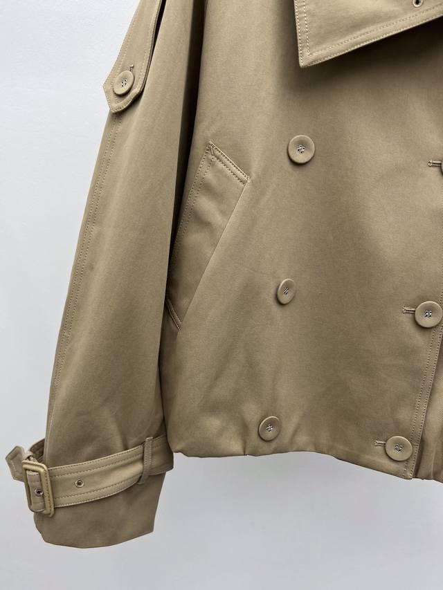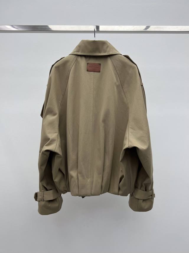 Trench coat-style straps at the shoulders, drawstring cuffs