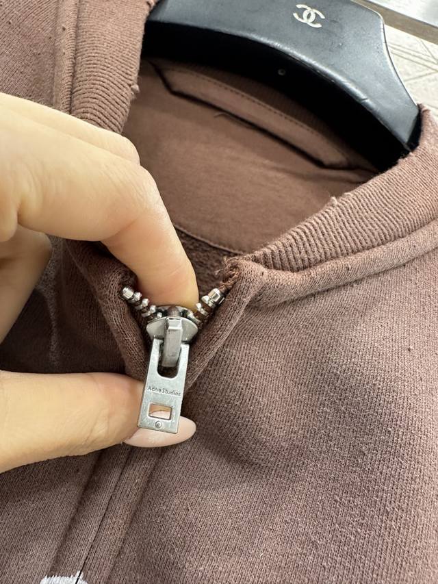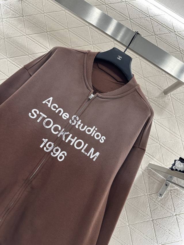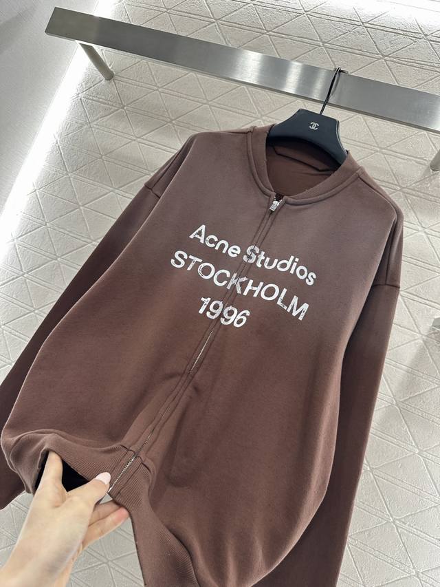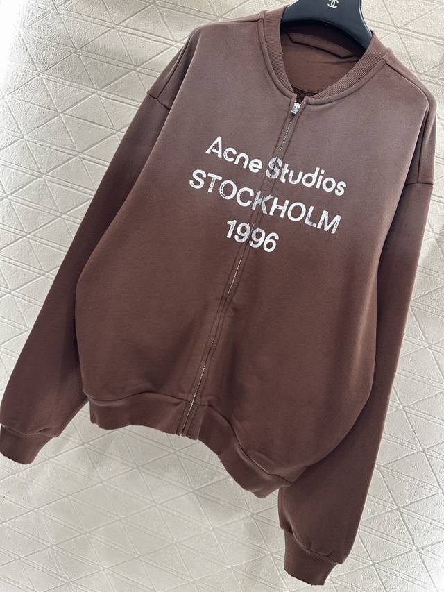 Acne Studio*2026 New Arrival Ddd Heavy-duty Washed Distressed Letter Baseball Jacket Ddd Custom Yb Original 100% Cotton, High-quality feel, comfortable to wear, baseball-style ribbed jacket cut, adjustable zipper, full of casual style, iconic letter logo decoration on the chest, treated with a natural distressed wash process to present an irregular whitening distressed effect, combined with a slight distressed effect, fashionable and retro, loose fit, slimming and relaxed fit, fashionable and high-end. Custom fabric and accessories, look for high-quality version brown DDD