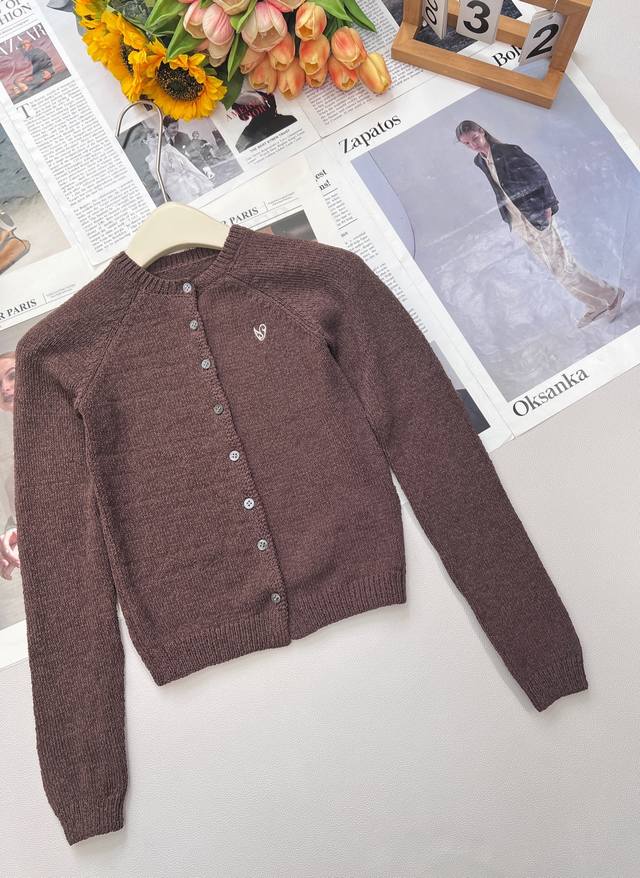 Acne Studios 25Ss early fall new heart-embroidered short knit cardigan, featuring heavy-duty letter embroidery craftsmanship and luxurious custom logo buttons. It can be worn alone or layered with yarn buttons, all custom-made. The classic embroidered heart logo on the chest adds a touch of detail, creating a sophisticated look. The short design elongates the legs without compromising height. The milky-coffee color is retro and playful, perfect for fall and winter. Whether it's a date or a daily commute, it's sure to make you the center of attention. Available in two colors. Sizes S, M, and D. Code A. D.D.D.